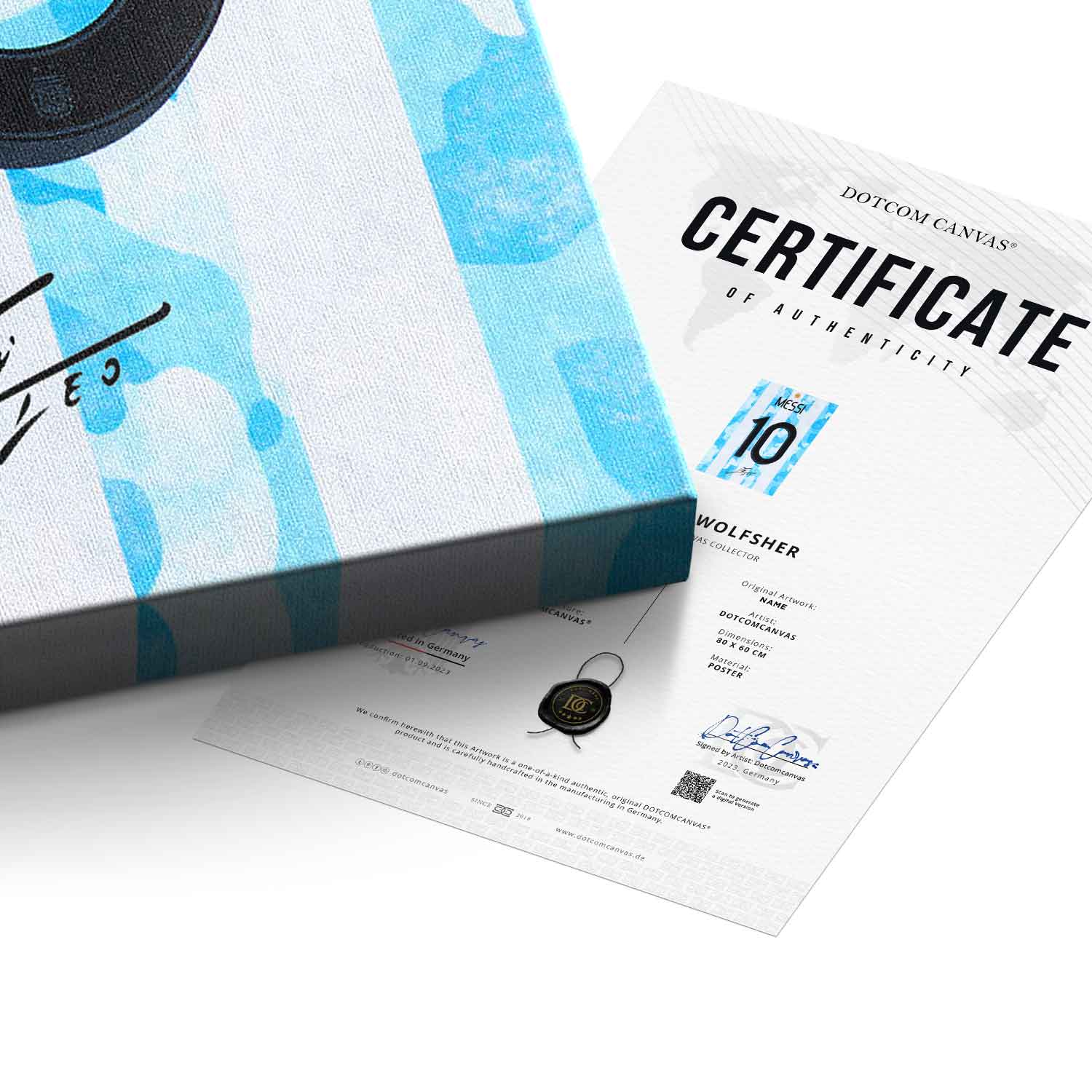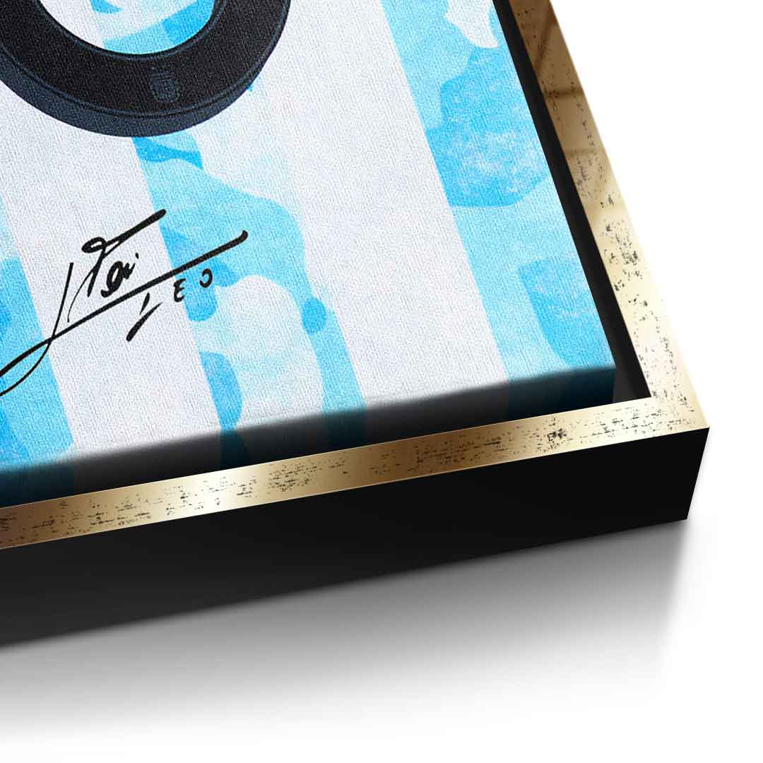 DOTCOMCANVAS® Premium Leinwandbild mit Lionel Messi Motiv.