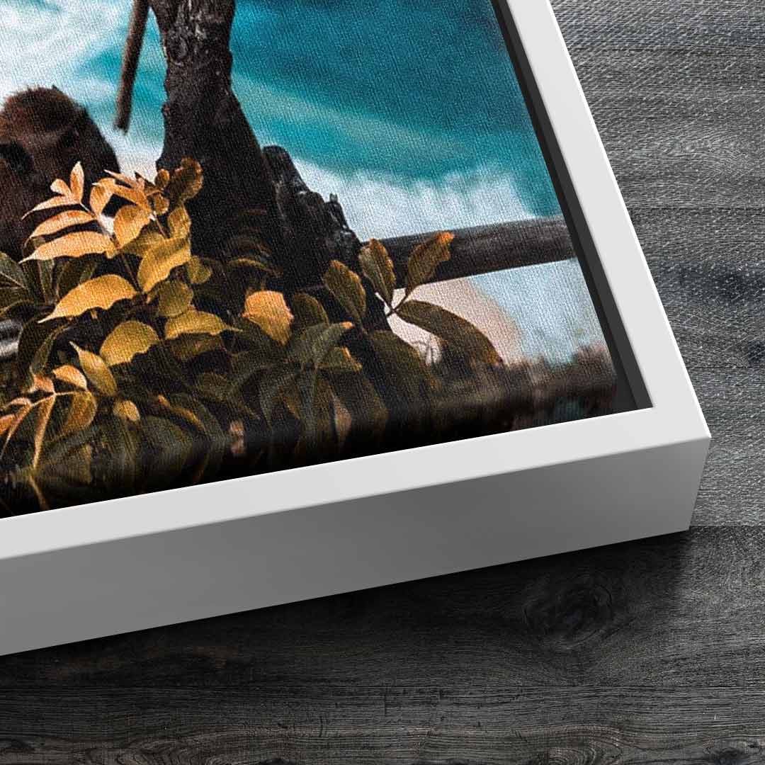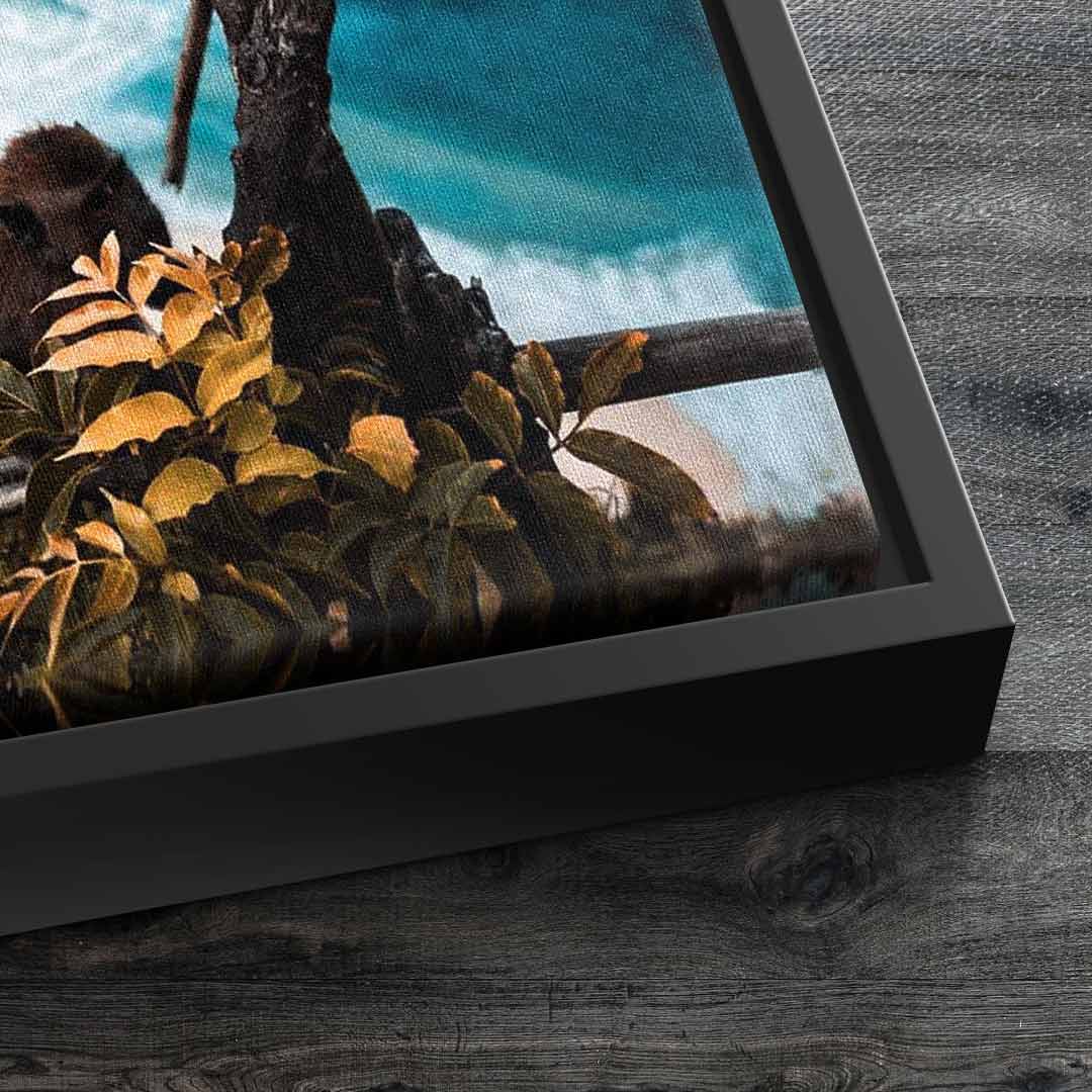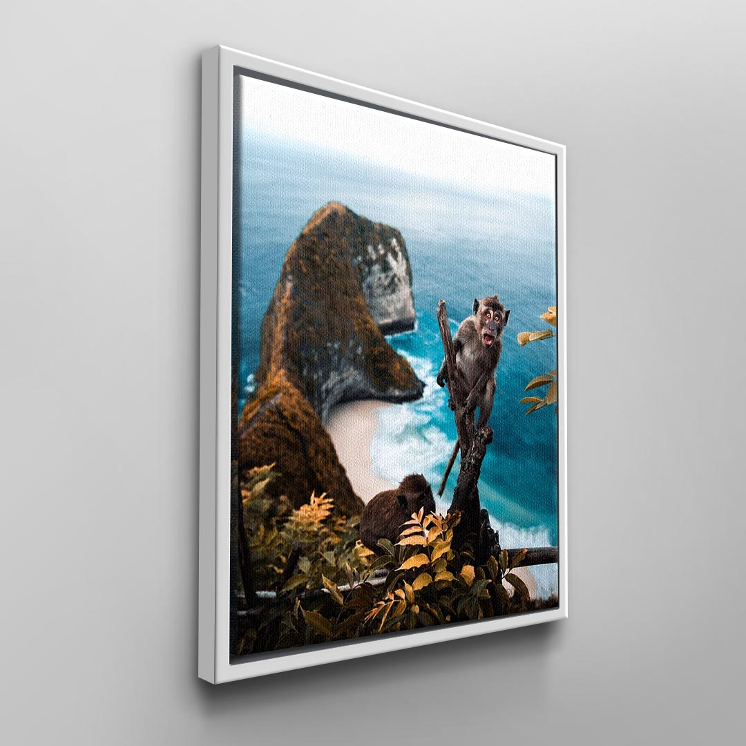 | "Monkey Island" Wandbild von DOTCOM CANVAS® Auch zur heutigen Zeit existieren immer noch Orte, an denen die Natur größtenteils unberührt geblieben ist. Immer wieder erleben Touristen an diesen Orten Begegnungen mit der Tierwelt. Unser modernes Wandbild „Monkey On Island“ zeigt, wie solch eine Begegnung aussehen kann. Das Motiv dieser Wanddekoration wurde von einem begabten Künstler geschaffen, von uns auf Leinwand gebracht und zeigt zwei Affen beim Klettern auf einer atemberaubenden Insellandschaft. Selbstverständlich inklusive unserer DotComCanvas Garantie! | Regulärer Preis