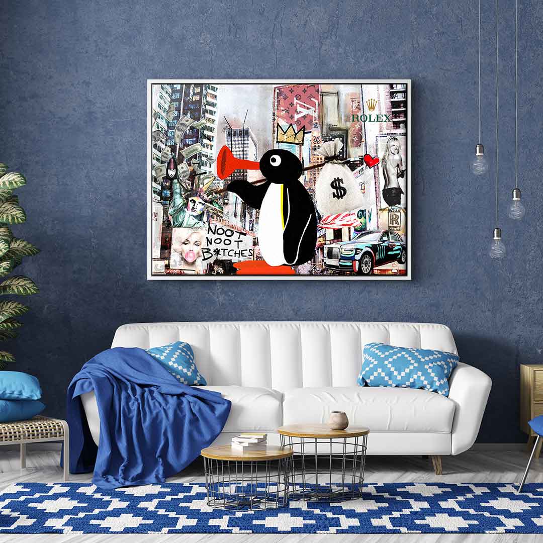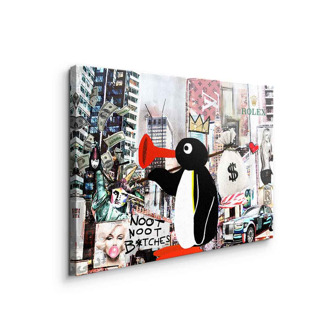 DOTCOMCANVAS® Premium Leinwandbild mit Noot Noot / Pinguin - Motiv im Pop Art / Streetart Stil.