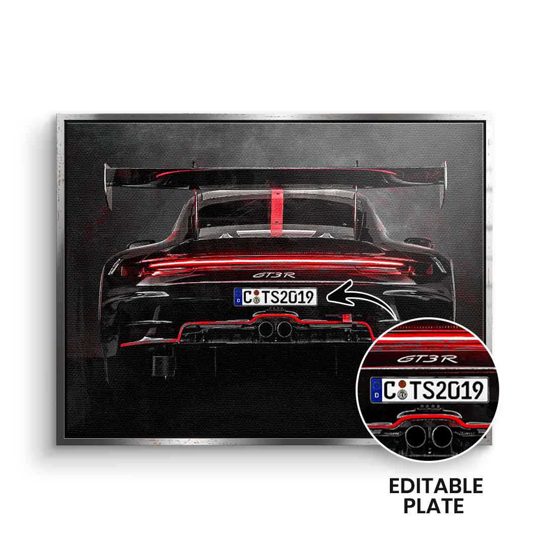 DOTCOMCANVAS® Premium Leinwandbild mit personalisierbarem Porsche Backside Motiv.