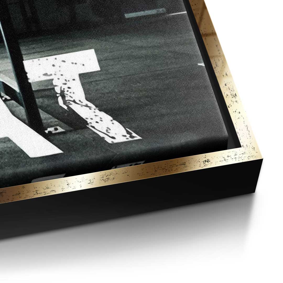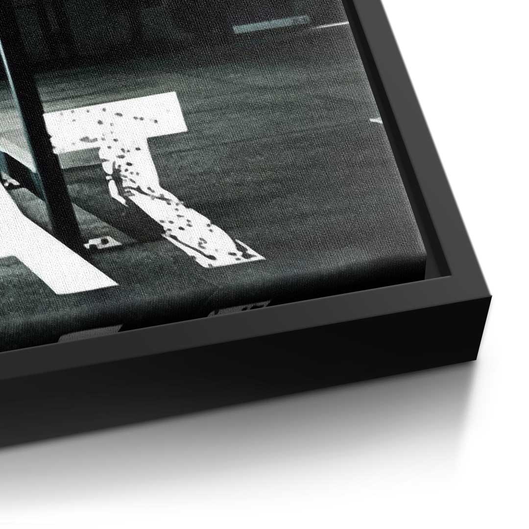 DOTCOMCANVAS® Premium Leinwandbild mit Motivationsspruch und Trainingsraum.