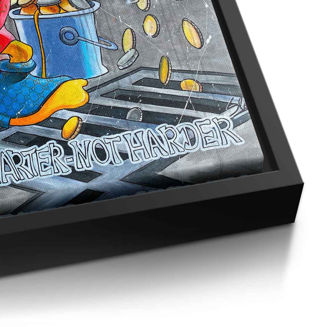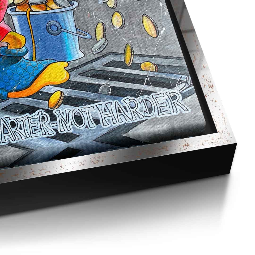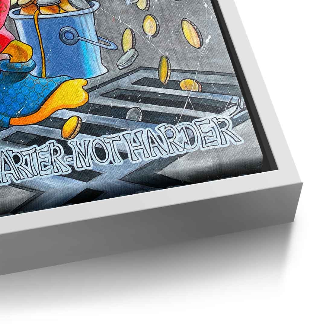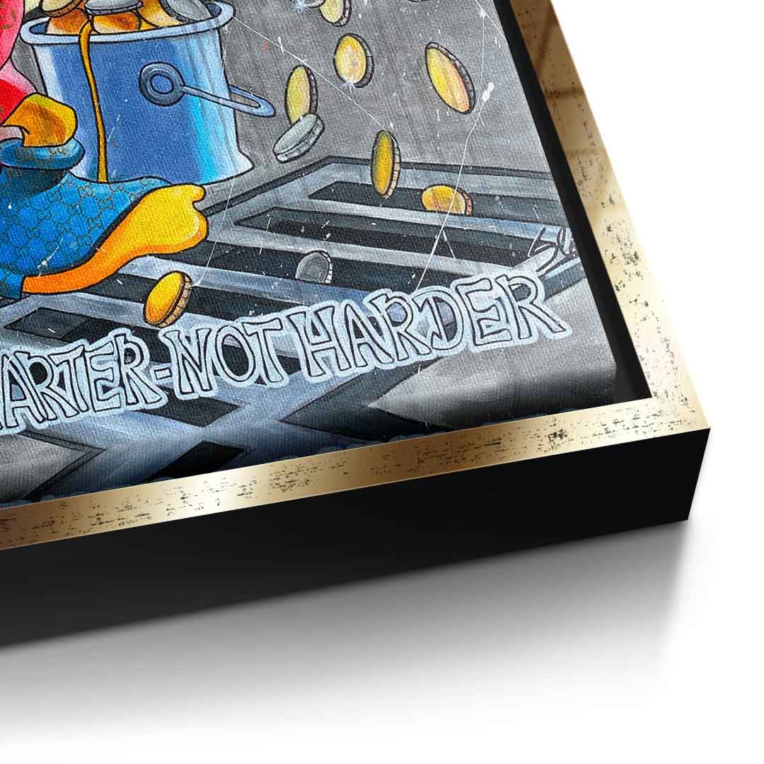 DOTCOMCANVAS® Premium Leinwandbild mit Dagobert Duck und Work Smarter not Harder - Motiv im Comic / Cartoon Stil.