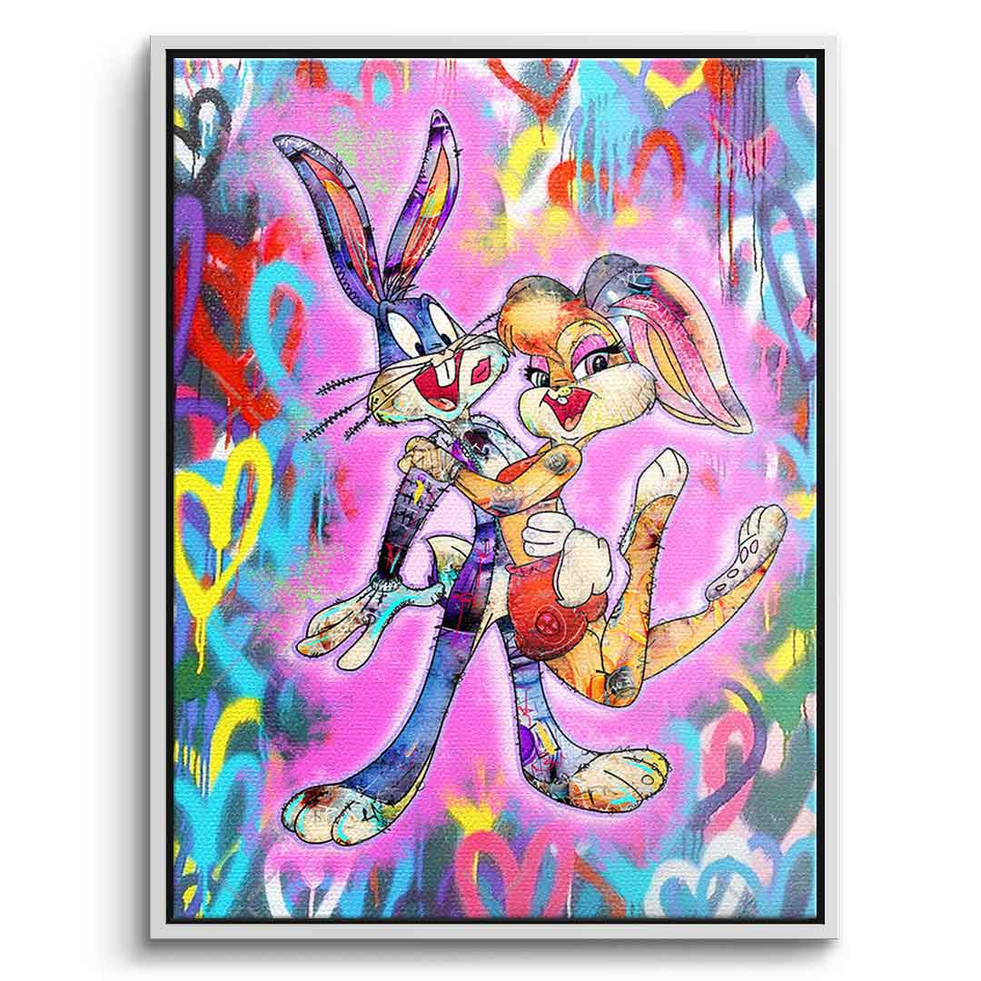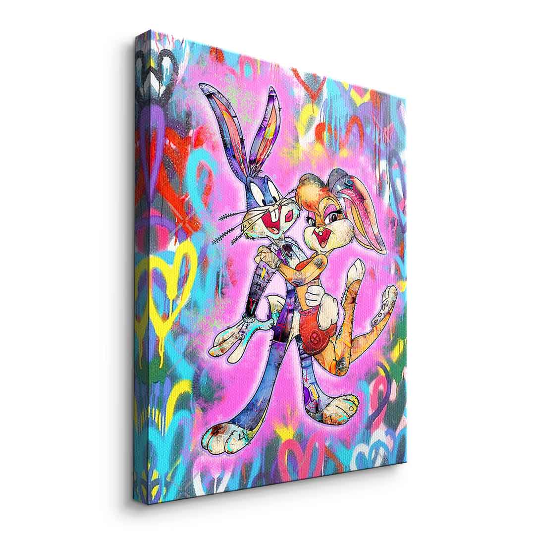 DOTCOMCANVAS® Premium Leinwandbild mit Bugs & Lola Bunny Motiv.