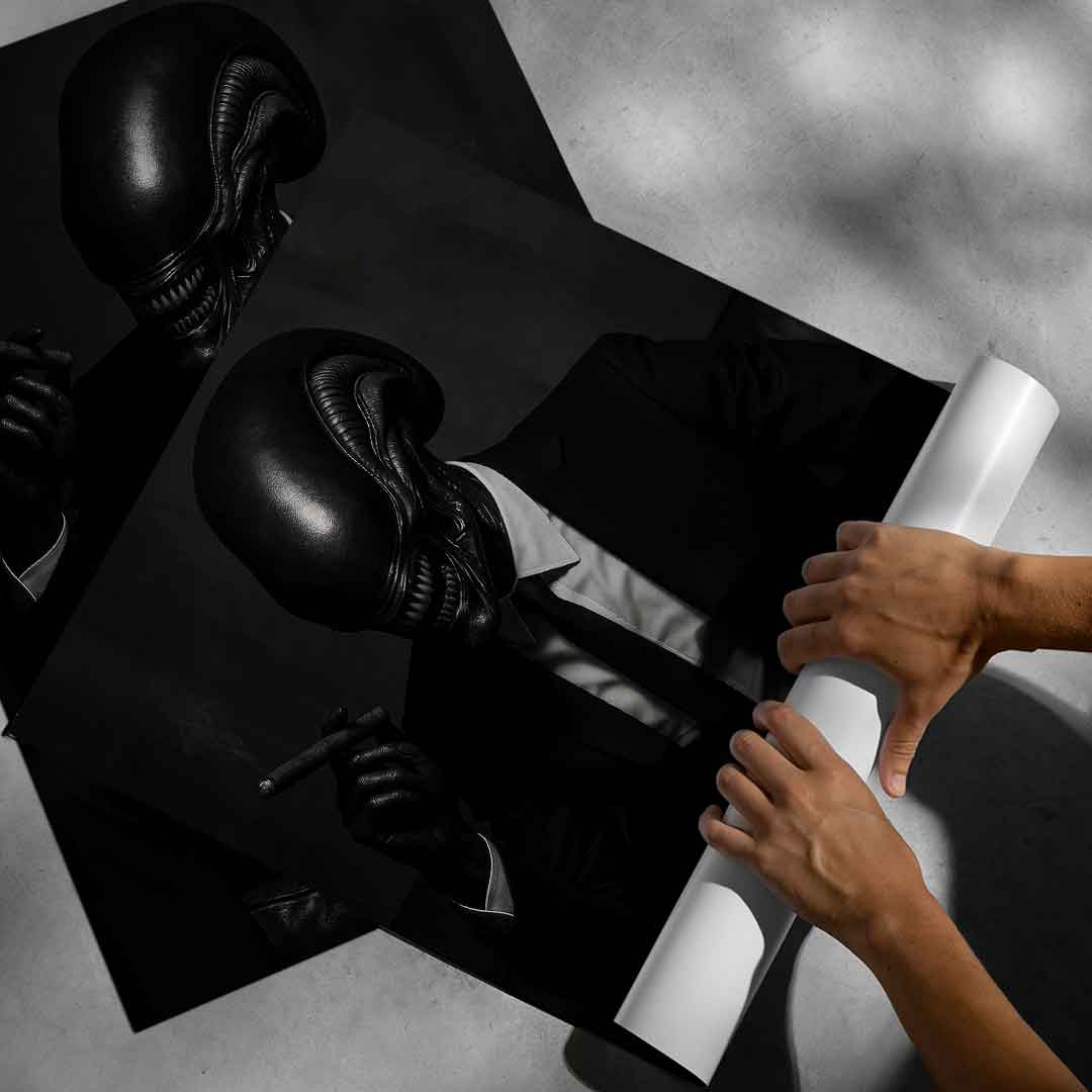 DOTCOMCANVAS® Premium Poster mit Alien Boss Motiv.
