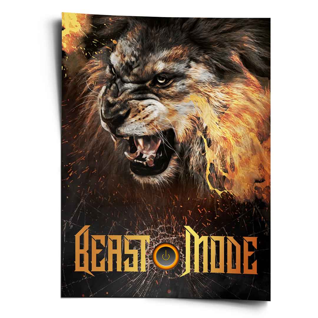 DOTCOMCANVAS® Premium Poster mit Beast Mode Lion Motiv.