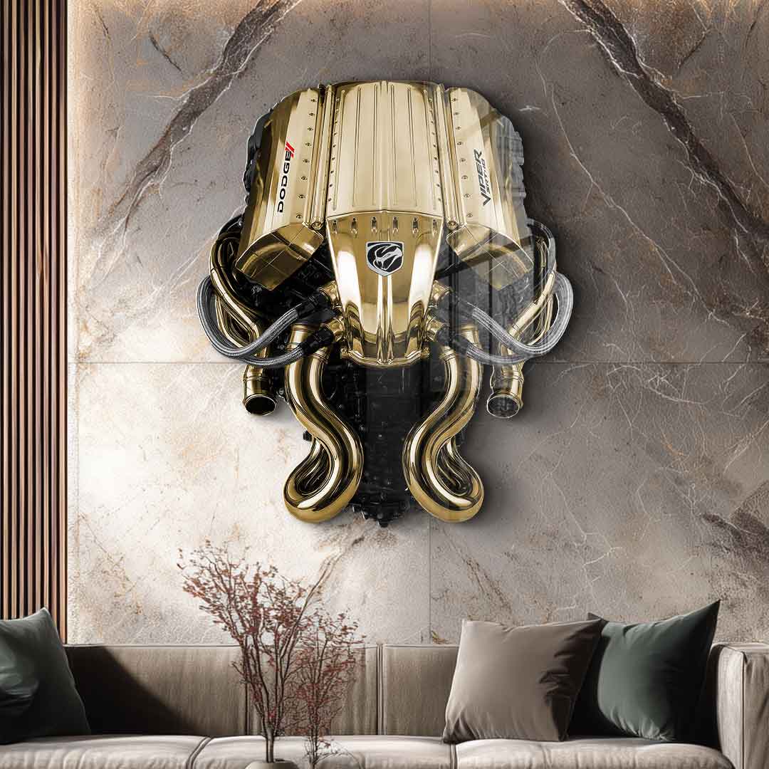 DOTCOMCANVAS® Premium Wall Sculpture Gold Leaf Picture with Freeform Dodge Viper V 10 Engine Motif.