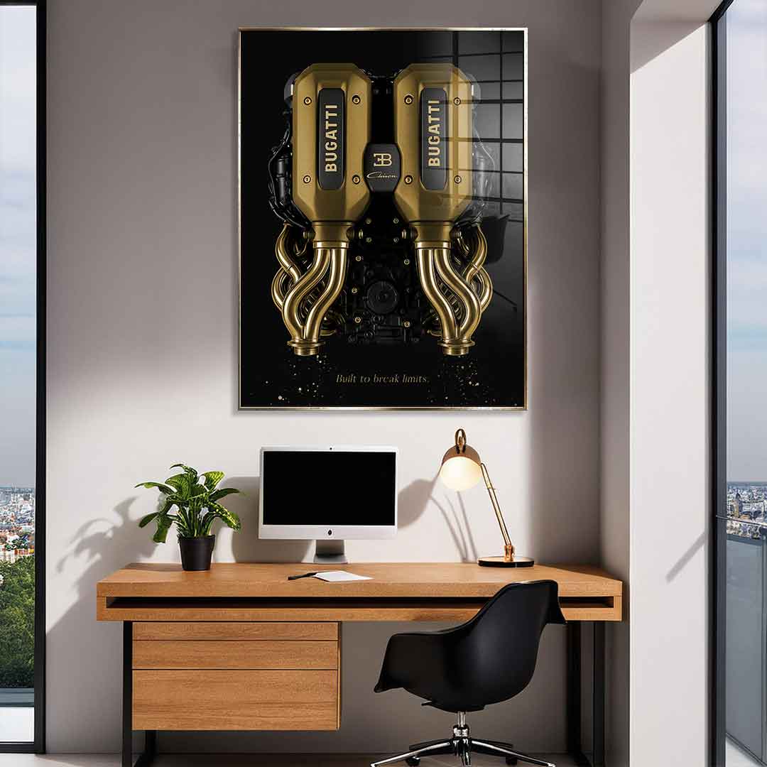 DOTCOMCANVAS® Premium Blattgoldbild mit Bugatti Engine - Motiv.