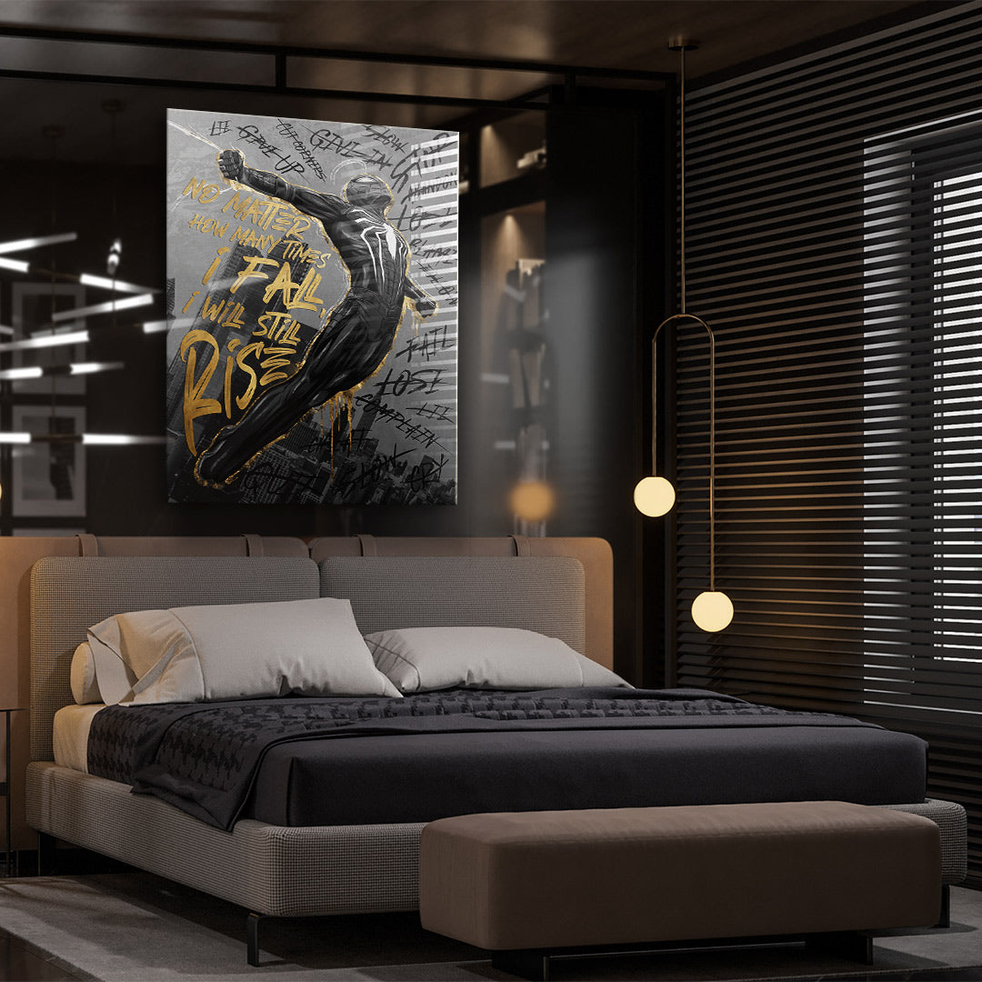 DOTCOMCANVAS® Premium Blattgoldbild mit Spinnenkrieger Motiv.