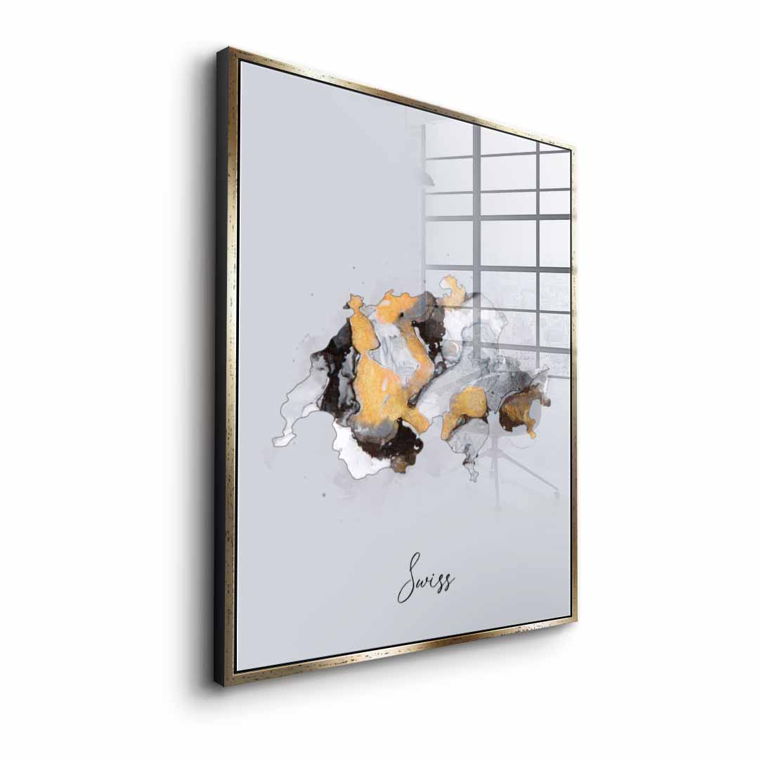 DOTCOMCANVAS® Premium Acrylic Glass Print with Abstract Countries - Swiss Motif.