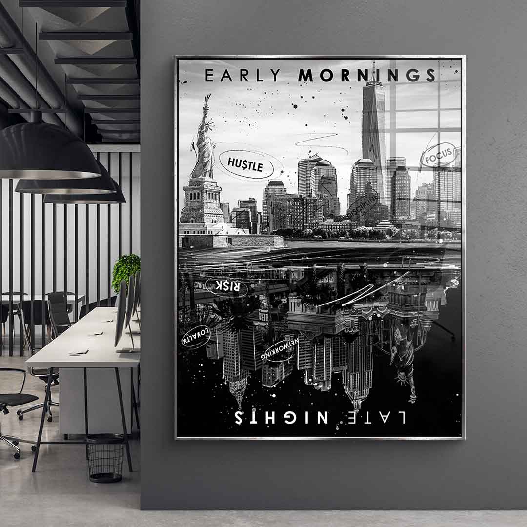 DOTCOMCANVAS® Premium acrylic glass print with a motivational Early Morning vs Late Night motif.
