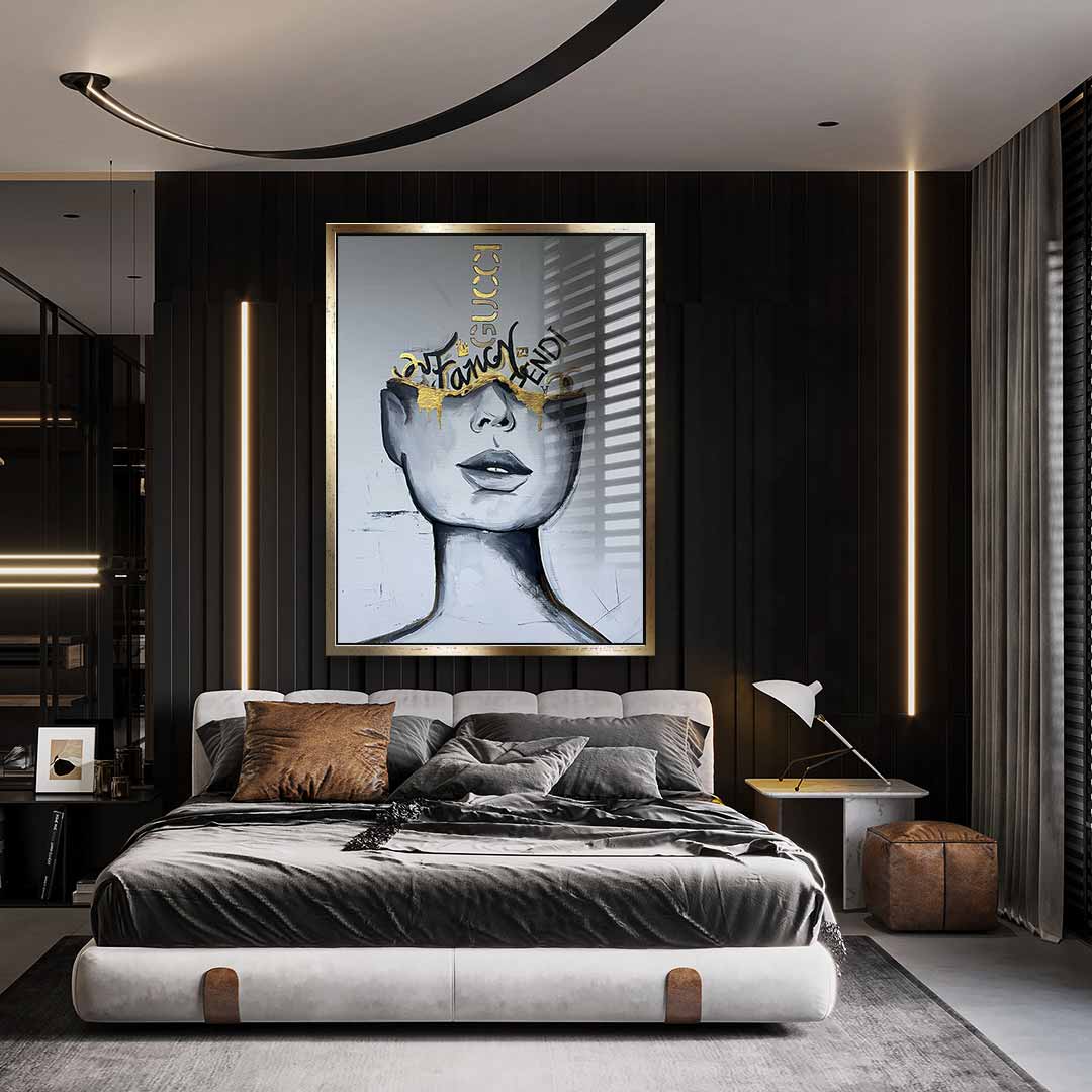 DOTCOMCANVAS® Premium Leinwandbild mit attraktiver Frau mit goldenen Akzenten.