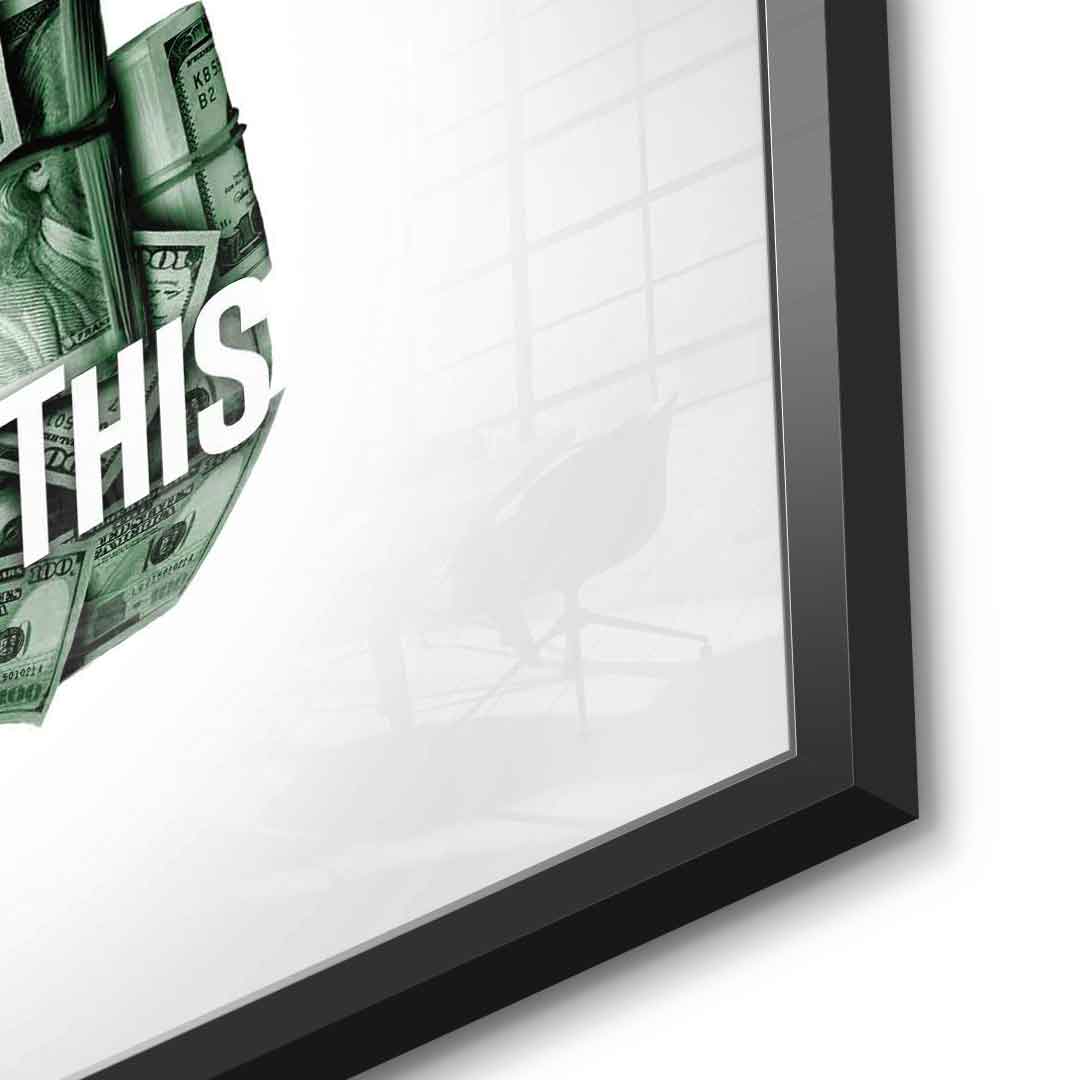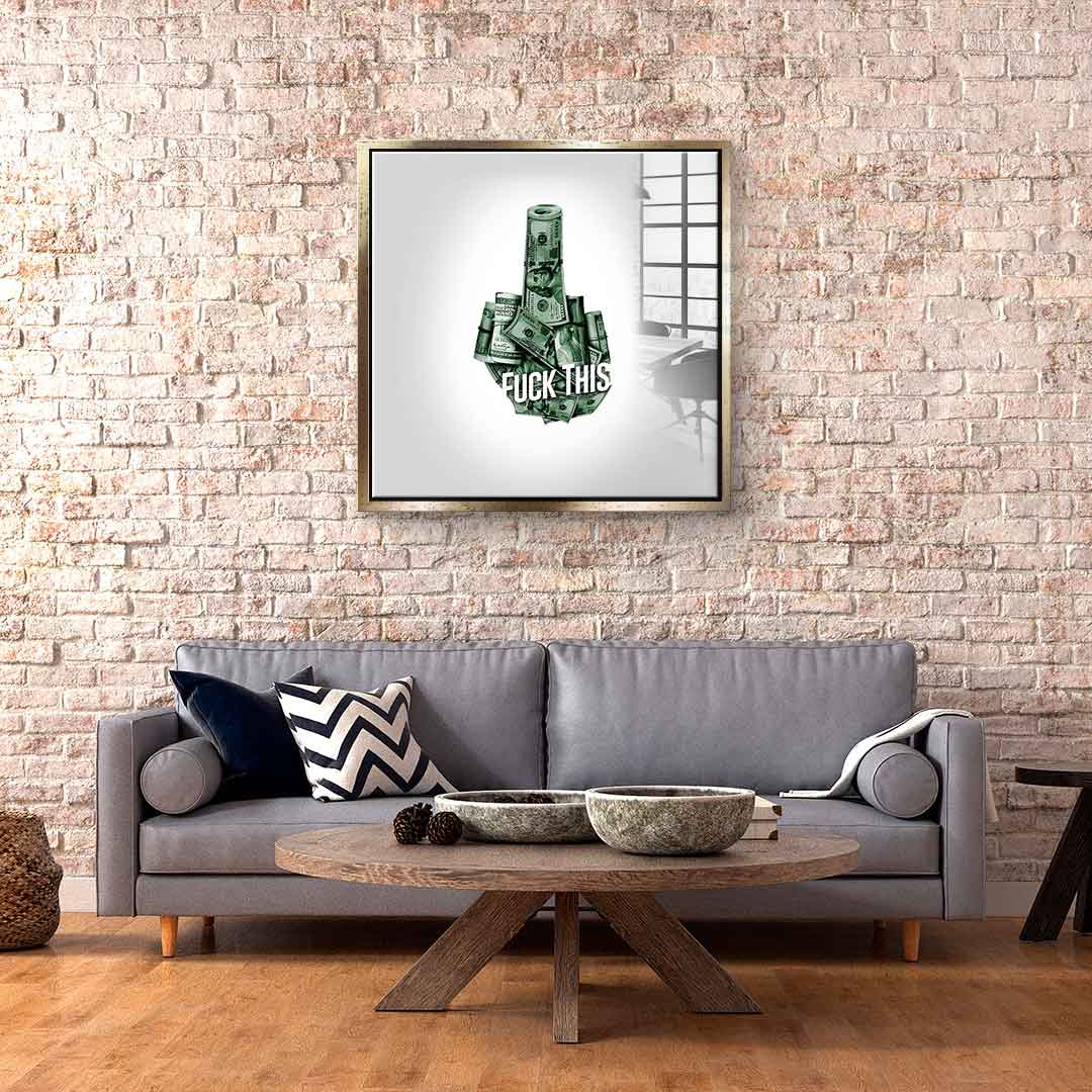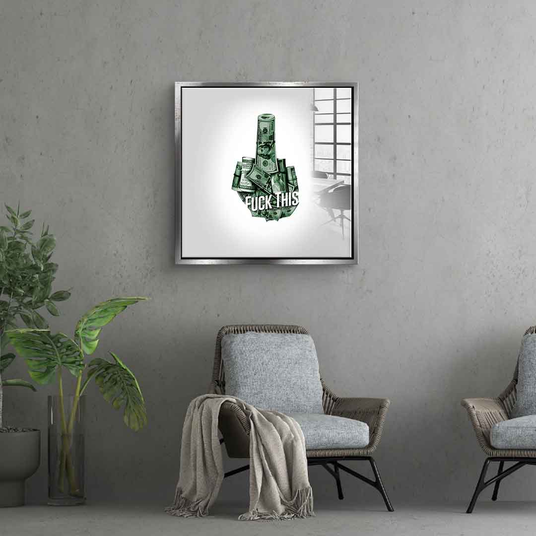 DOTCOMCANVAS® Premium Acrylic Glass Picture with Middle Finger / Banknotes Motif.