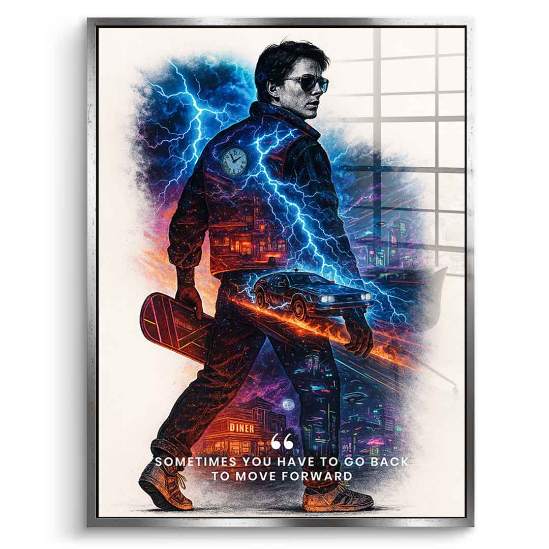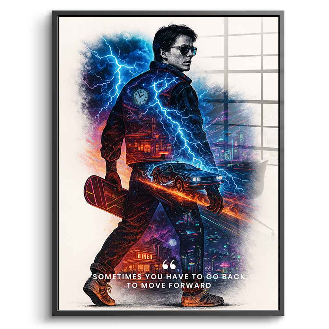 DOTCOMCANVAS® Premium Acrylic Glass Print with Go Back to Move Forward Motif.