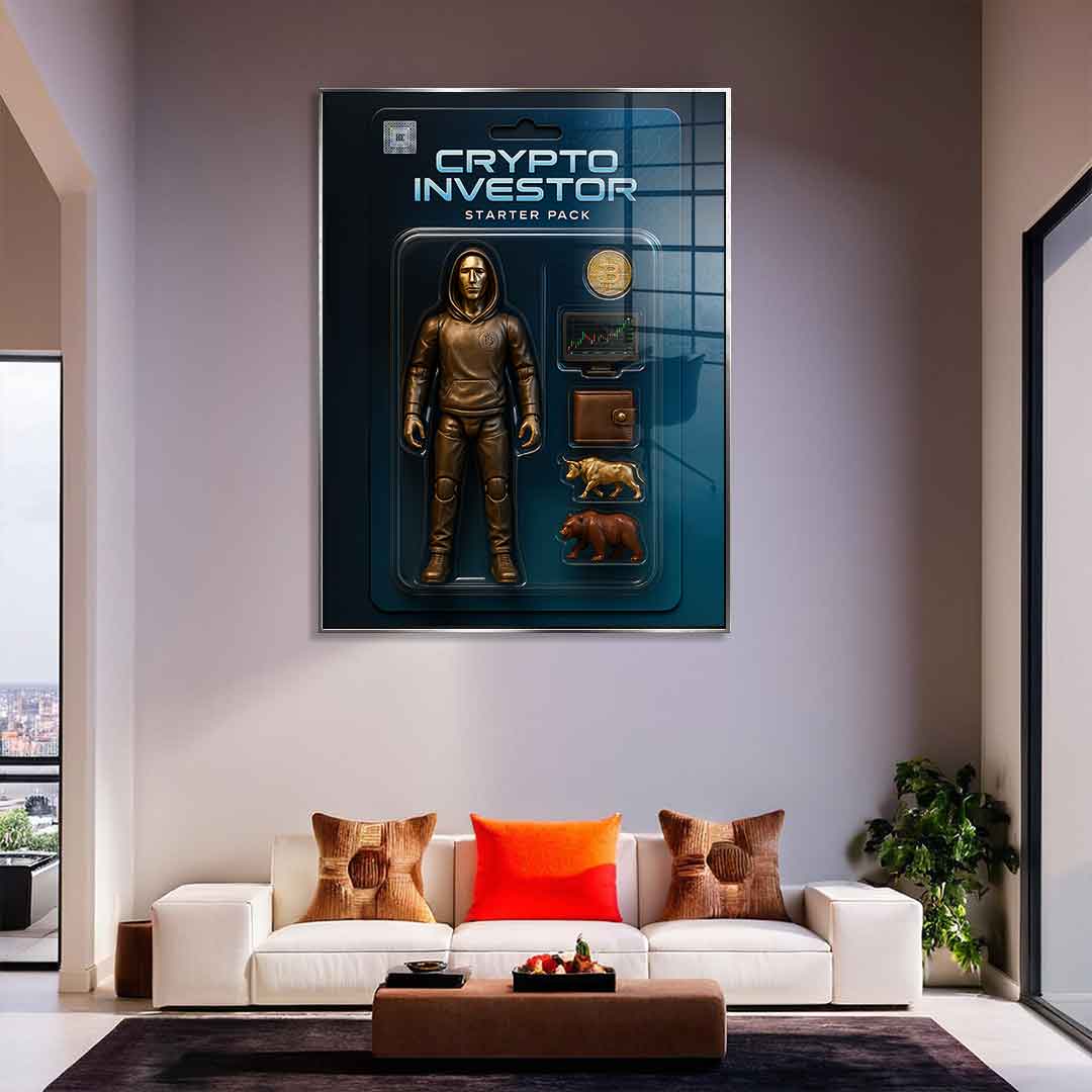DOTCOMCANVAS® Premium Acrylic Glass Print with CRYPTO INVESTOR Starter Pack Design.