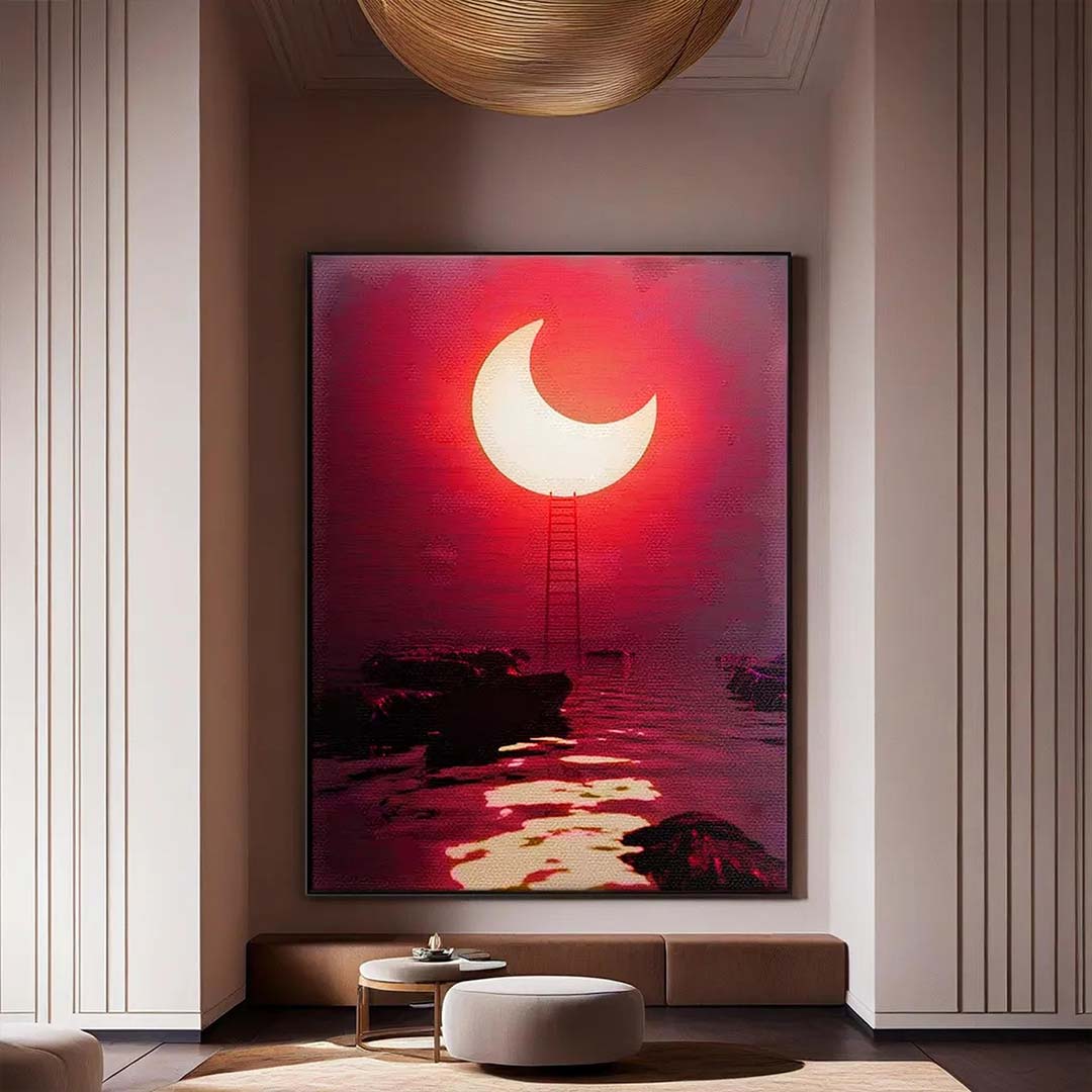 DOTCOMCANVAS® Premium Canvas Print with Red Solar Eclipse Motif.