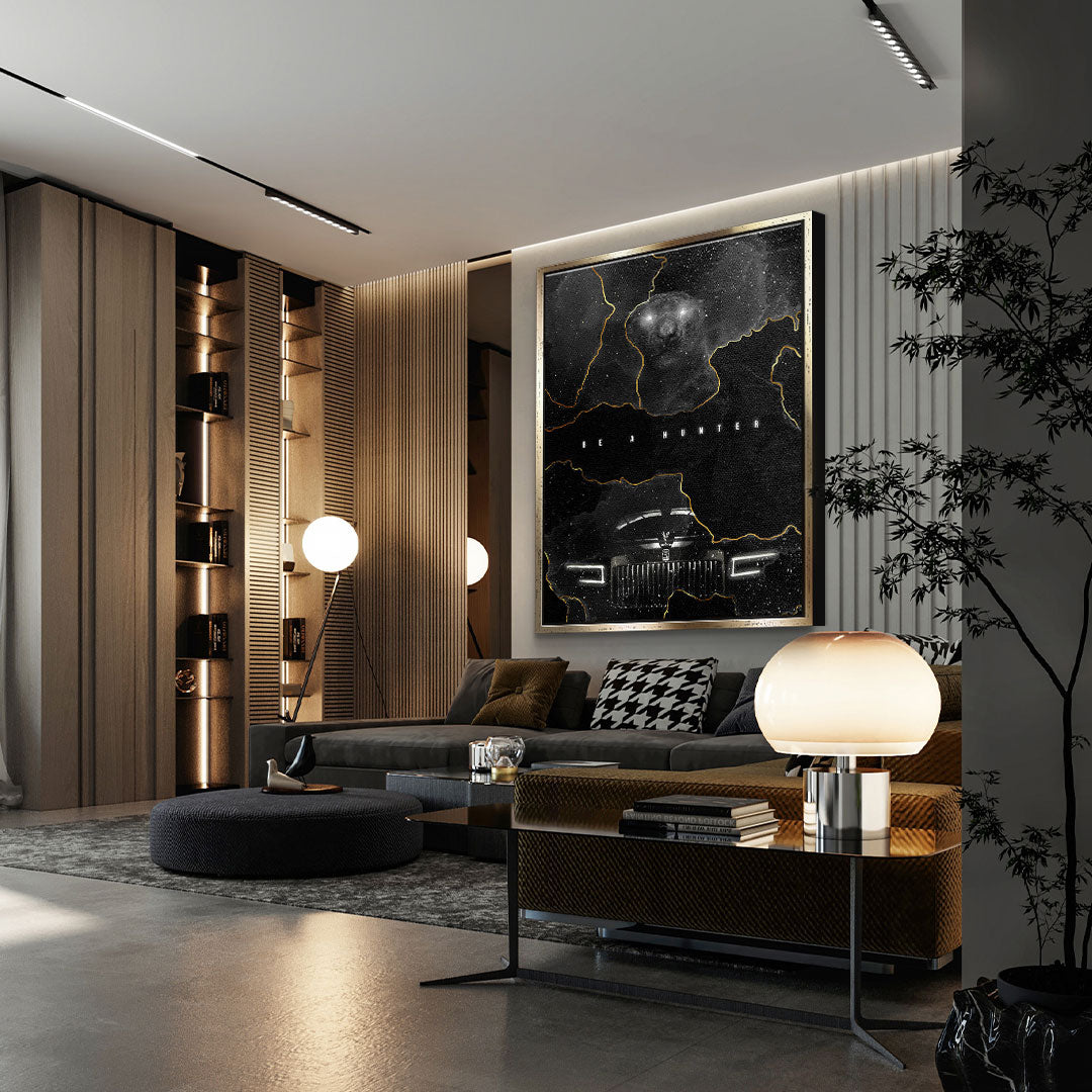 DOTCOMCANVAS® Premium canvas print with a pop art motif in an elegant black and gold design. Chase your dreams.