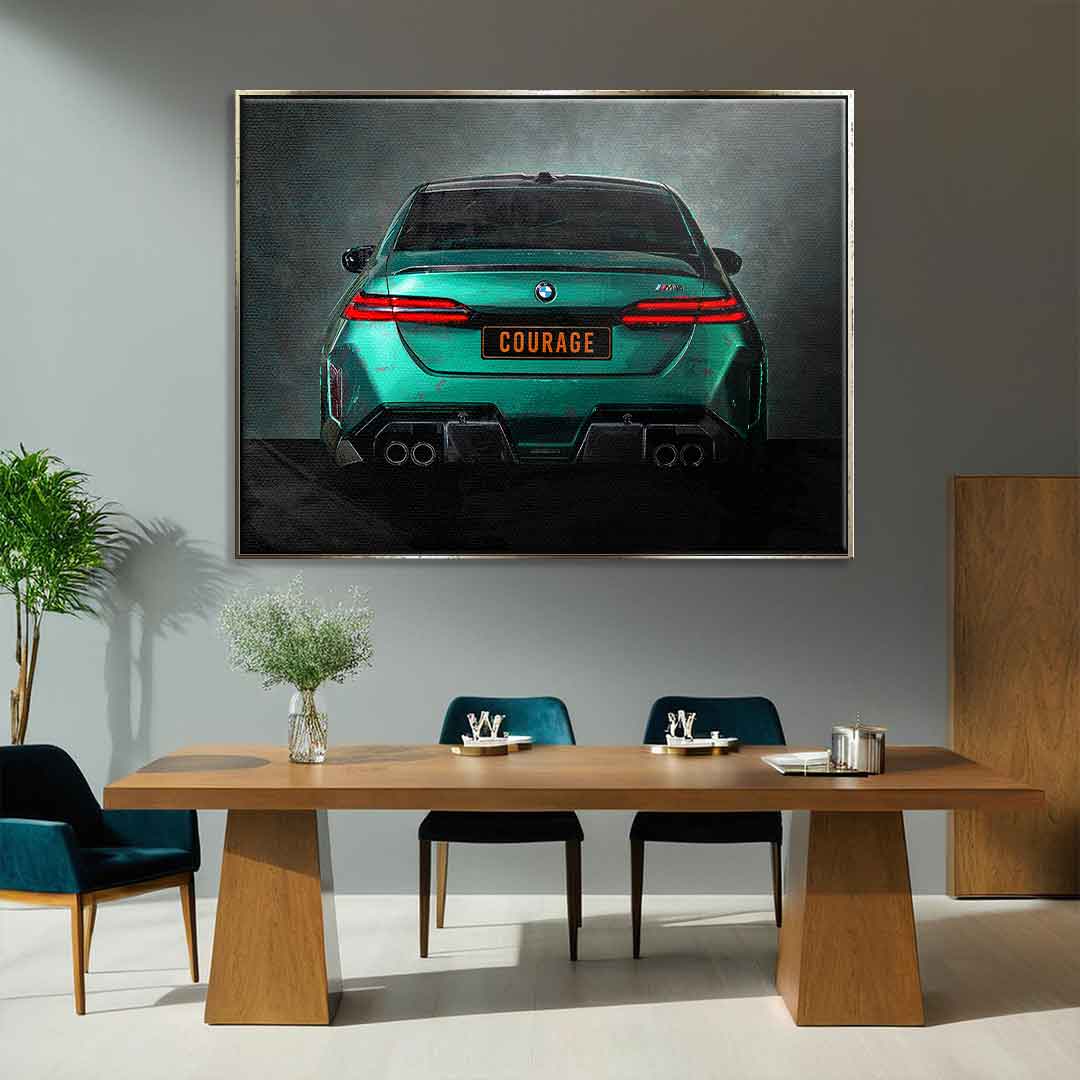 DOTCOMCANVAS® Premium Canvas Print with BMW M5 Backside Motif.
