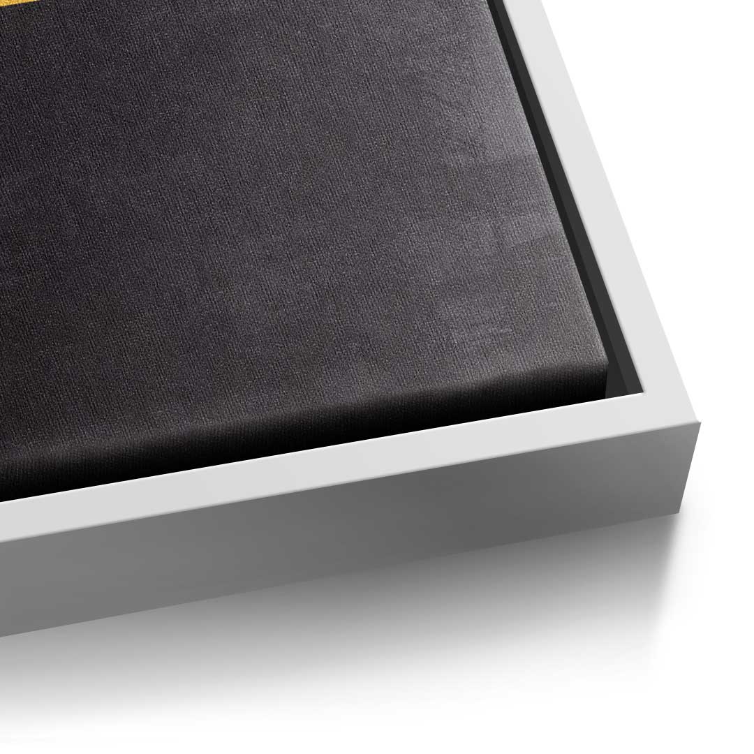 DOTCOMCANVAS® Premium canvas print with skyline and motivational quote in black, white and gold.