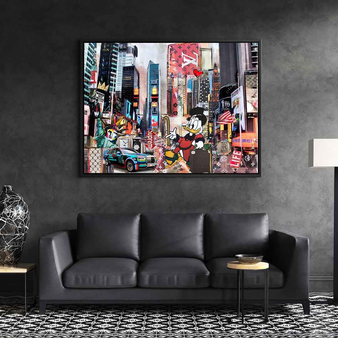 DOTCOMCANVAS® Premium Canvas Print featuring Scrooge McDuck in New York City - Motif.
