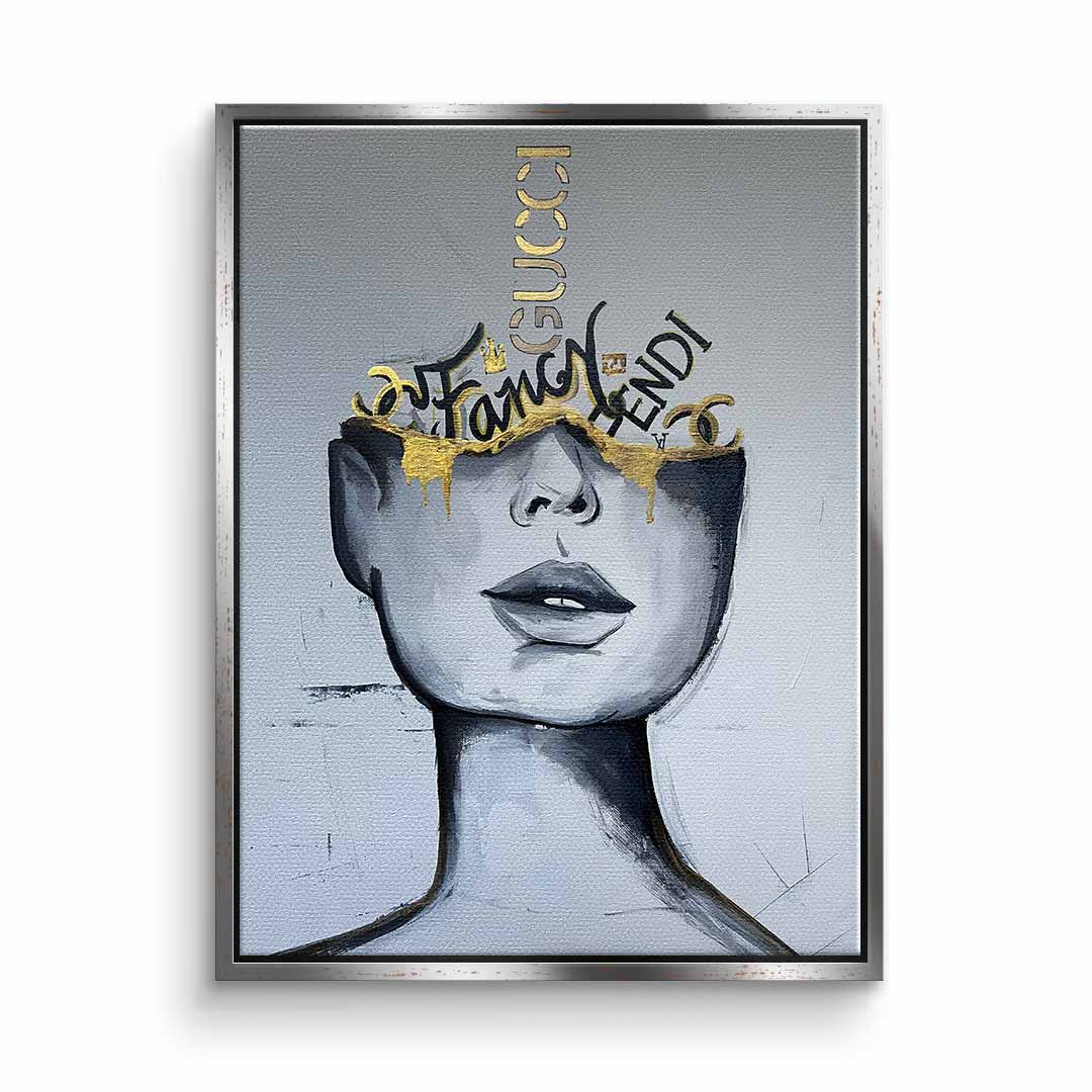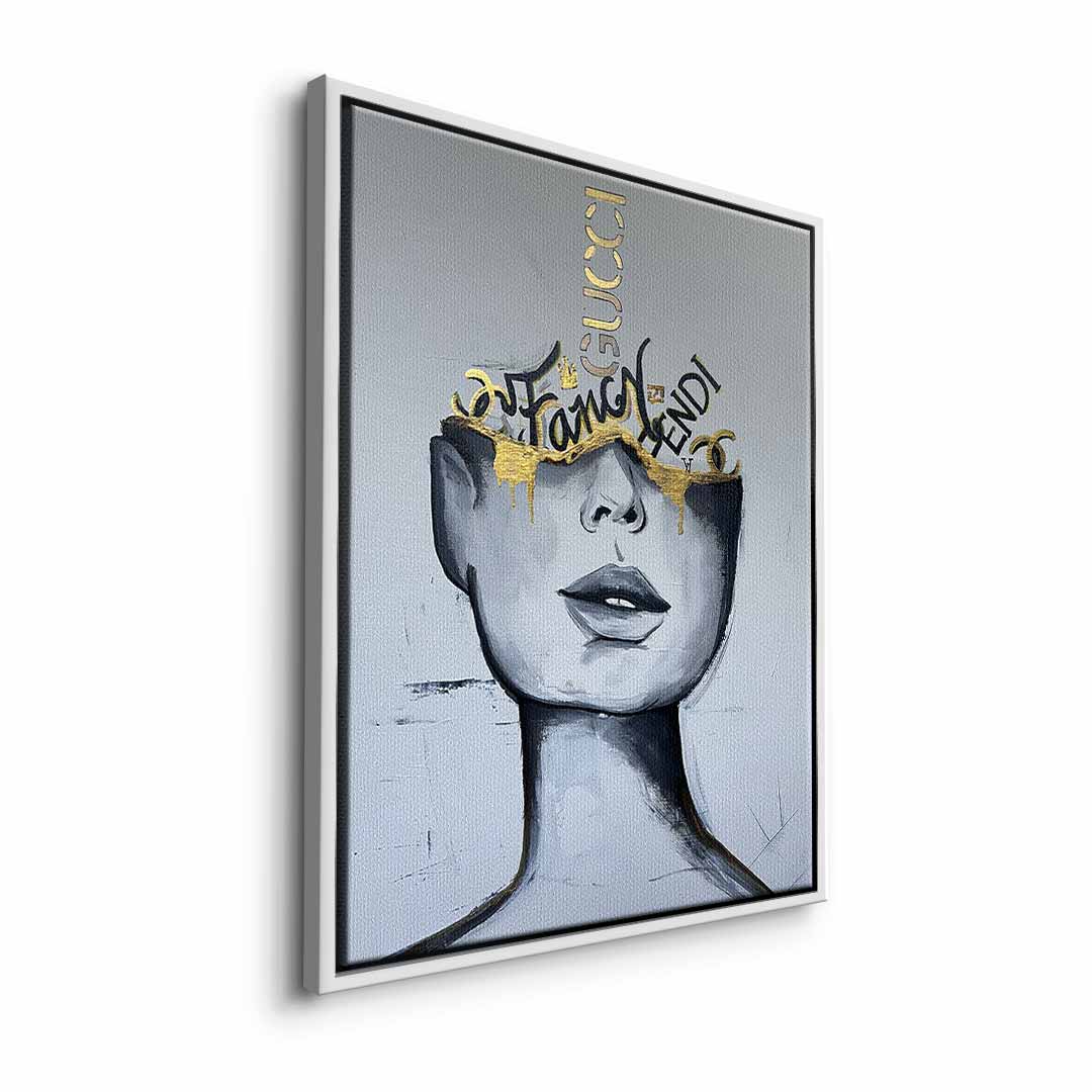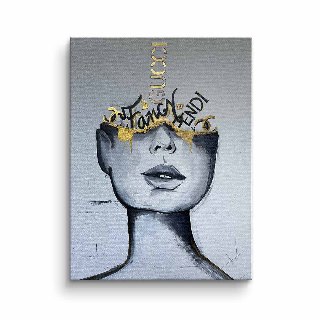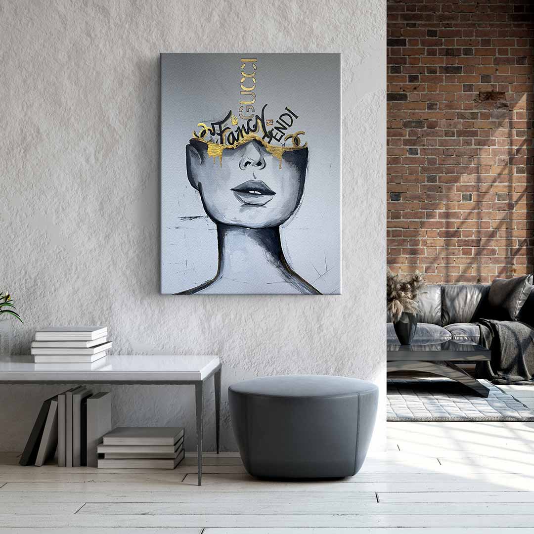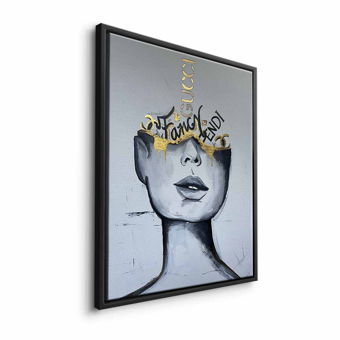 DOTCOMCANVAS® Premium Canvas Print featuring an attractive woman with golden accents.