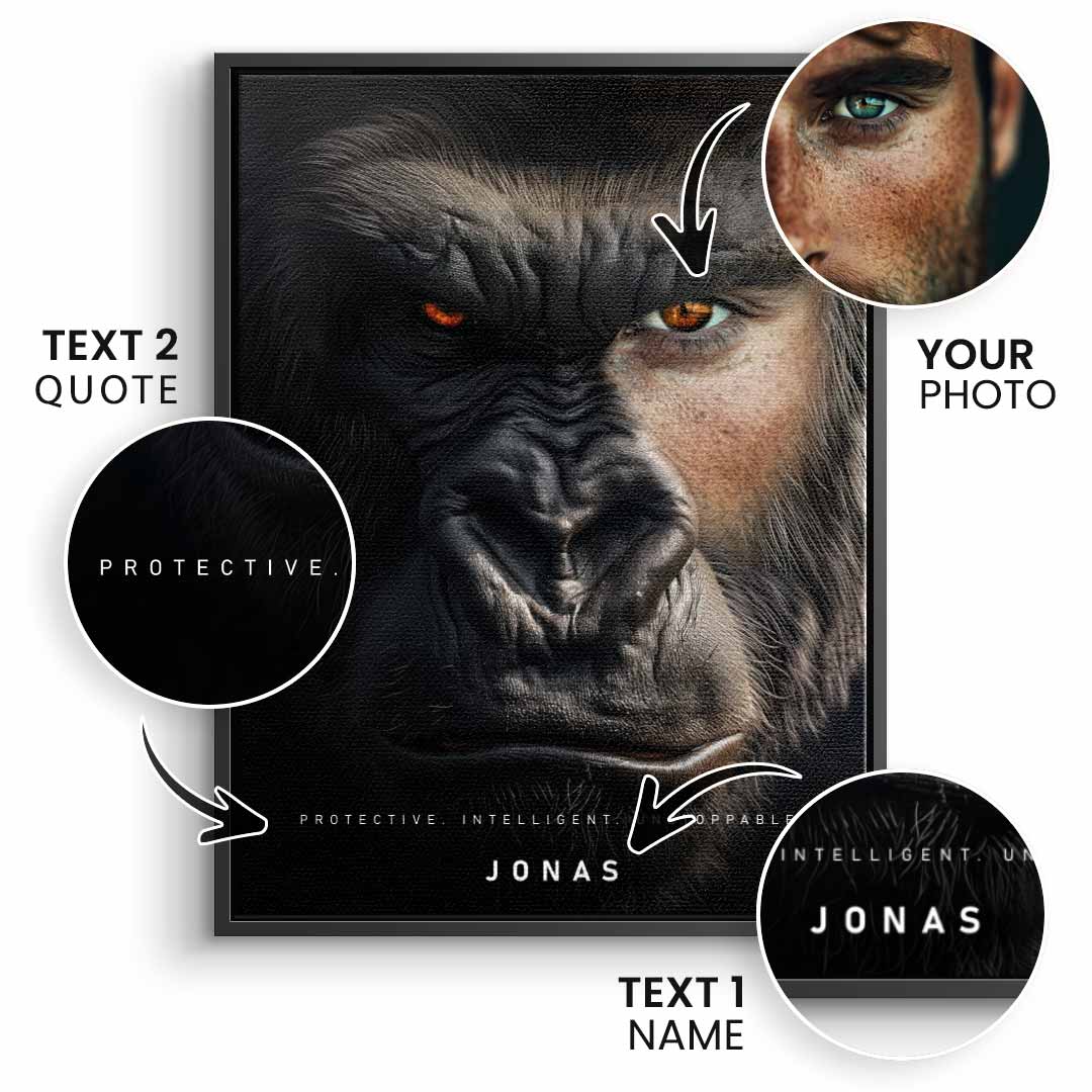 DOTCOMCANVAS® Premium Leinwandbild mit personalisierbaren und motivierenden Gorilla Fusion - Motiv.