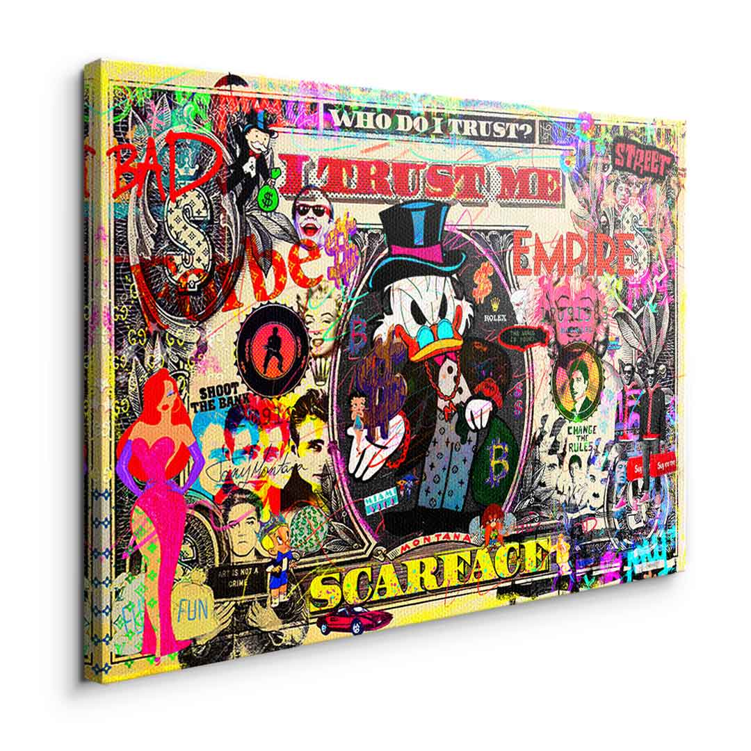 DOTCOMCANVAS® Premium Canvas Print with I TRUST ME motif in Pop Art style.