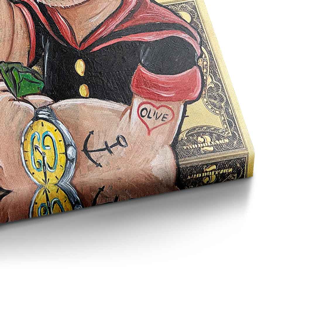 DOTCOMCANVAS® Premium Canvas Print with Popeye motif in comic style with the lettering "Now or never".
