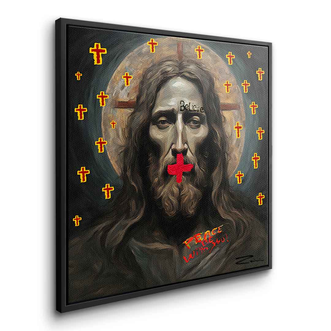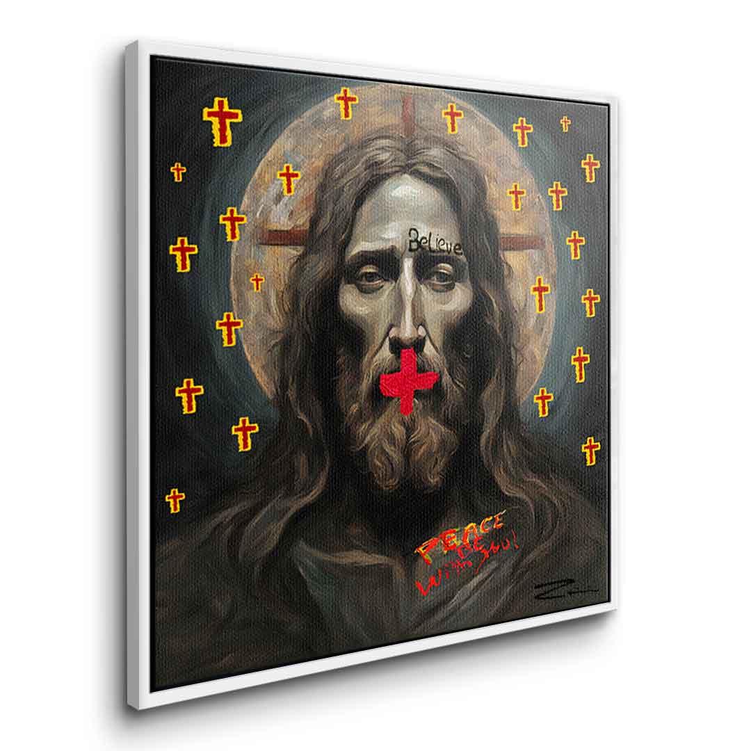 DOTCOMCANVAS® Premium Canvas Print featuring a portrait of Jesus .