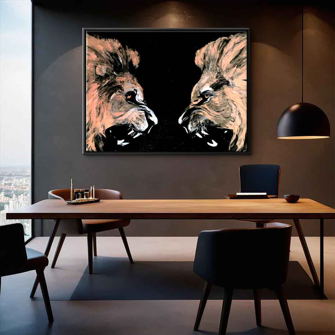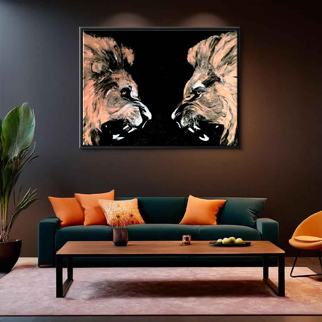 DOTCOMCANVAS® Premium Canvas Print with Lion Motif.