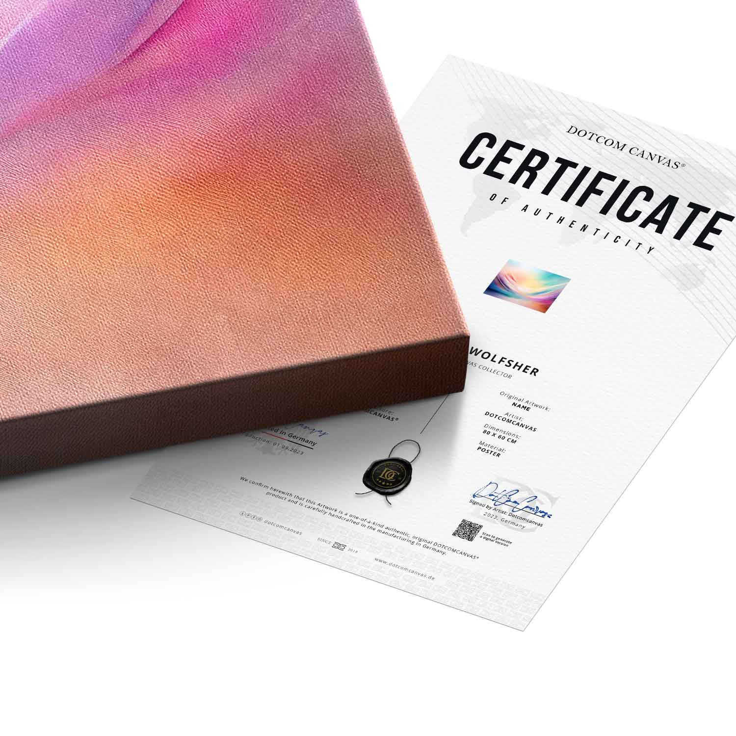 - Handmade in Germany: Each product is carefully handcrafted and stretched onto a 2cm stretcher frame in our German factory.
