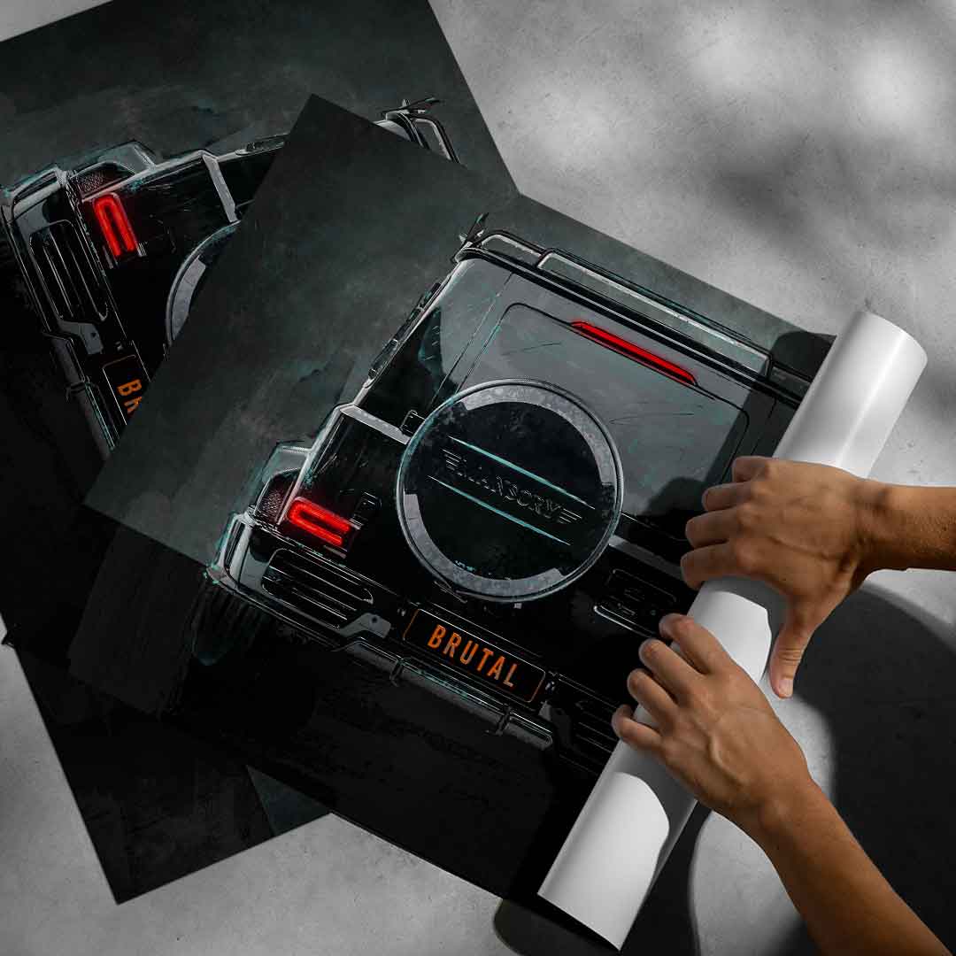 DOTCOMCANVAS® Premium Poster mit G-Wagon Backside Motiv.