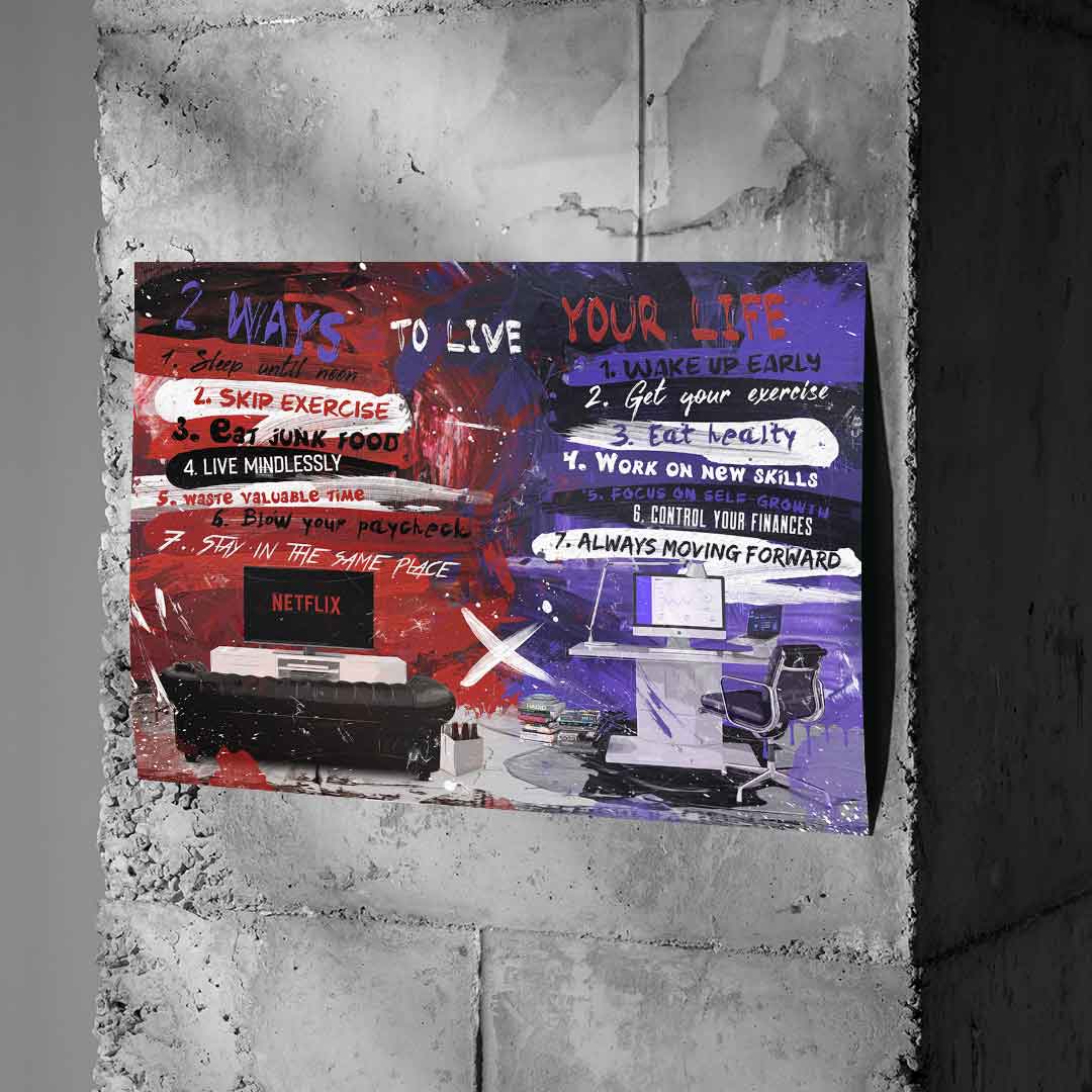DOTCOMCANVAS® premium poster with TWO WAYS TO SPEND YOUR LIFE motif.