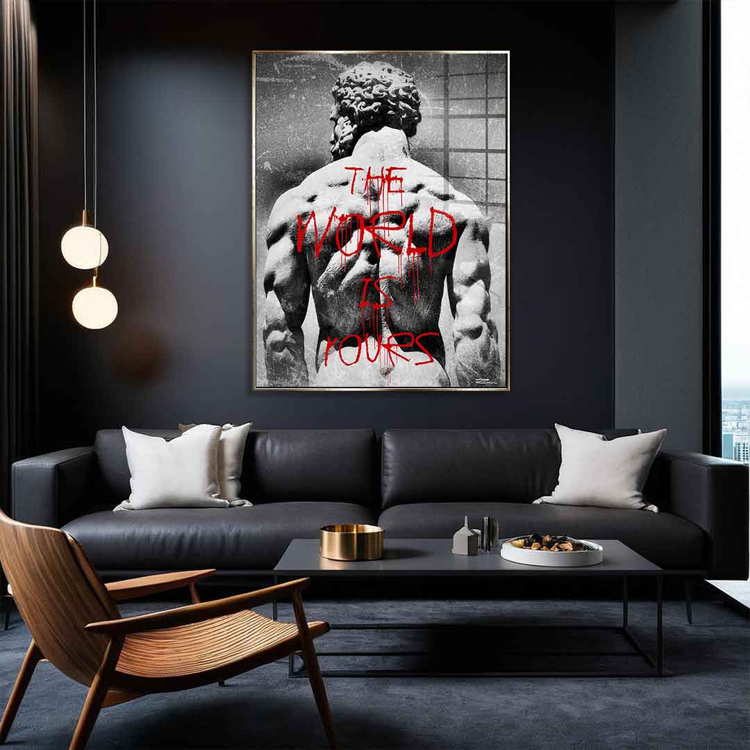 DOTCOMCANVAS® Premium acrylic glass print with The World is Rours motif.
