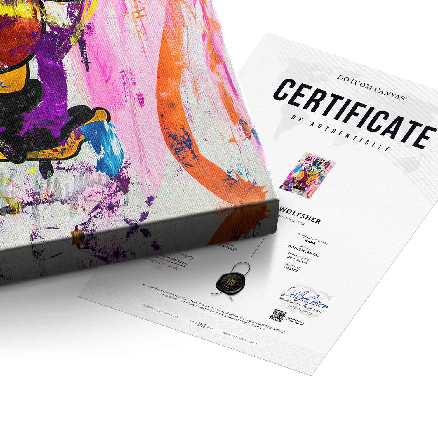 - 100+ year guarantee: On each DOTCOMCANVAS® You receive a 100+ year product warranty with this product.