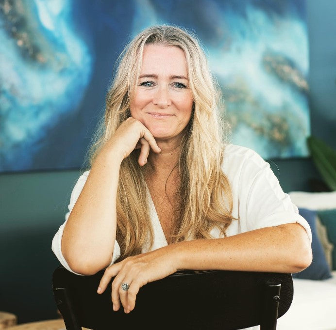 In ihrem Küstenstudio, etwa 15 Seemeilen entfernt vom atemberaubenden Great Barrier Reef, lässt sich Petra von den umgebenden Gewässern inspirieren, während sie Werke mit einer Mischung verschiedener Medien erschafft.