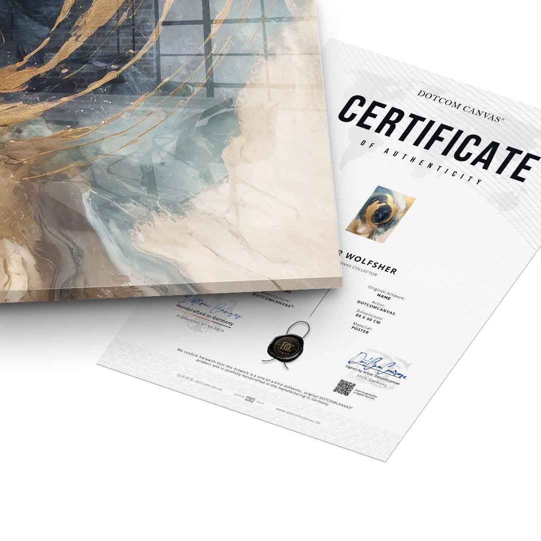 DOTCOMCANVAS® Premium Acrylic Glass Print with Golden Vortex Motif.