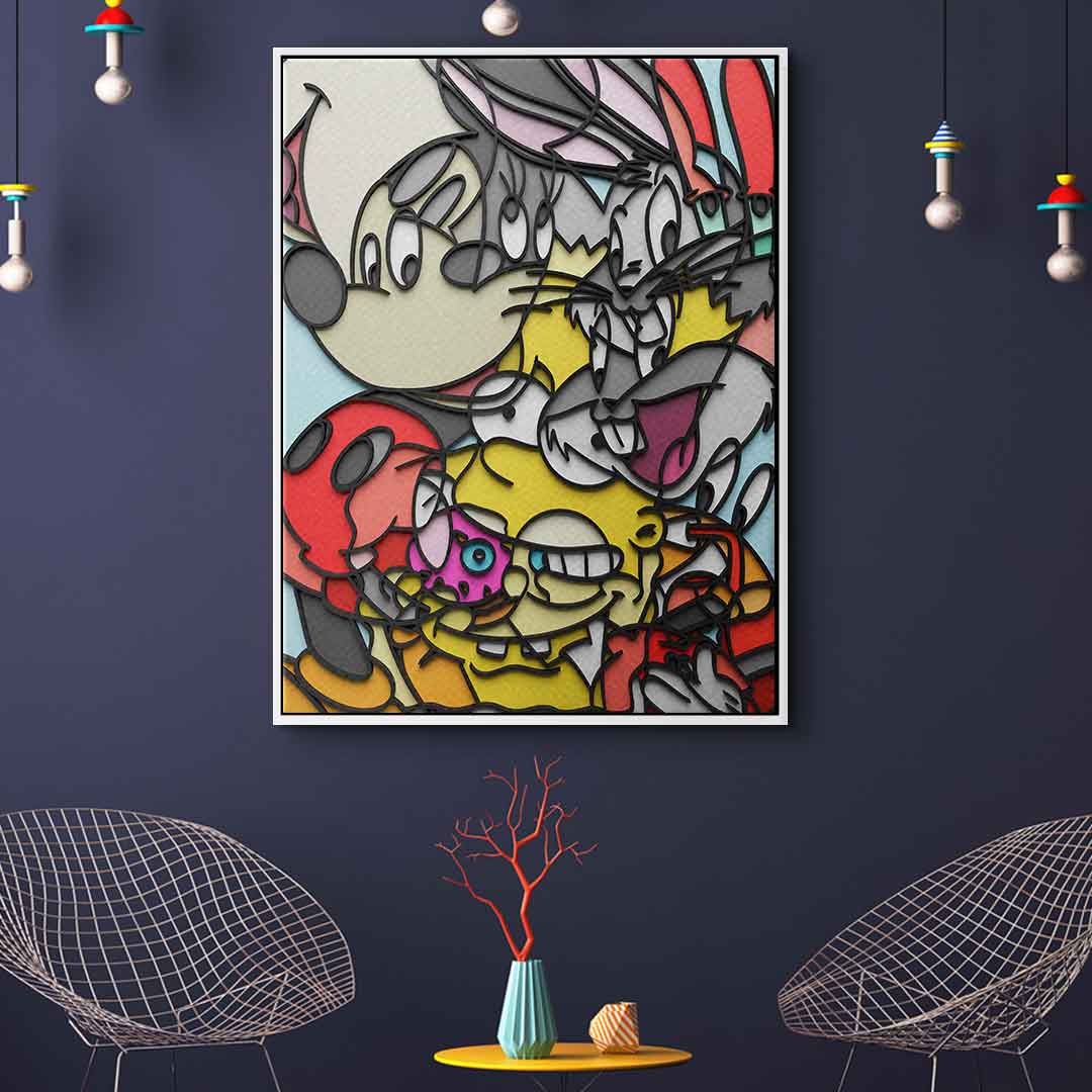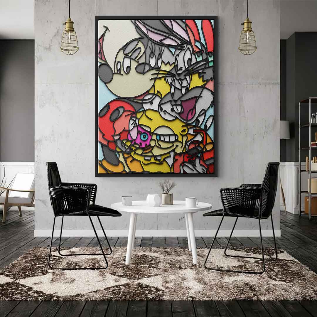 DOTCOMCANVAS® Premium Canvas Print with Comic Mouse / Simpsons / Bugs Bunny - Motif in Pop Art / Comic / Cartoon Style.