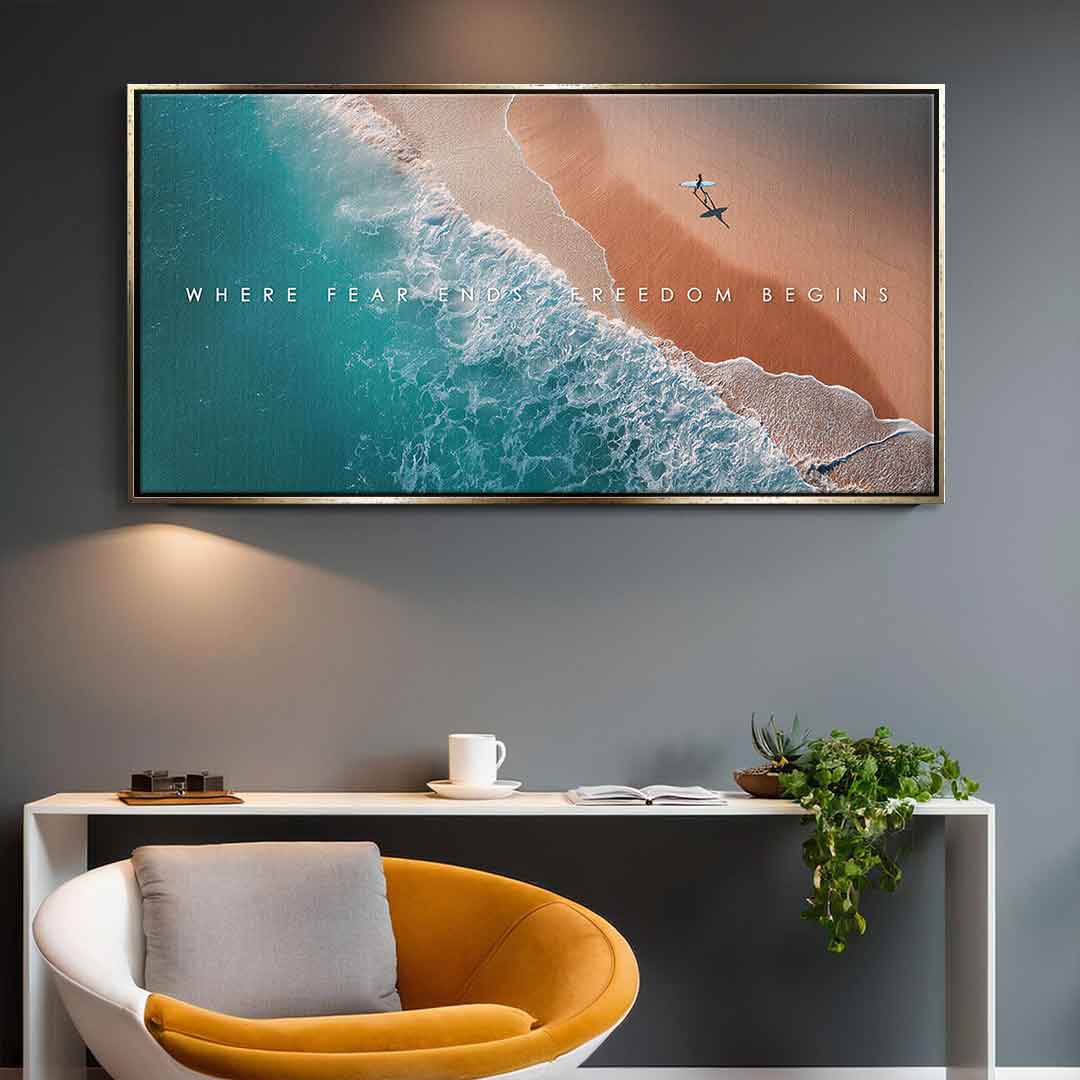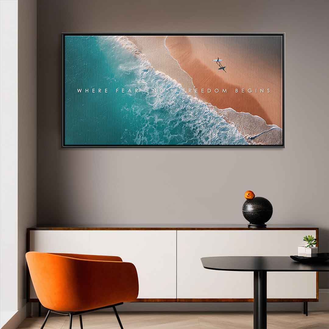 DOTCOMCANVAS® Premium Leinwandbild mit Freedom Begins Motiv.