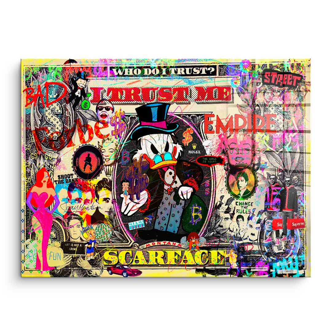 DOTCOMCANVAS® Premium Acrylglasbild mit I TRUST ME Motiv im Pop Art Stil.