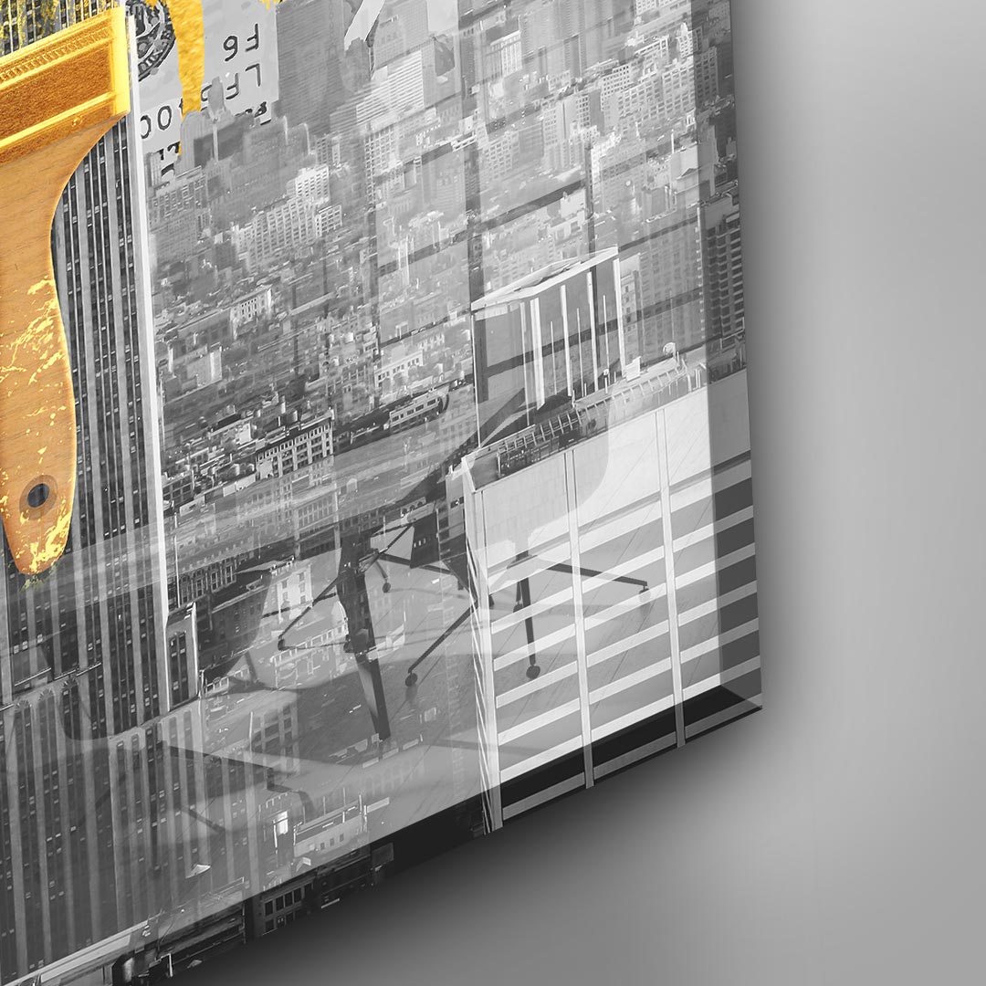 - The entire gold content is painstakingly applied to the acrylic glass by hand using gold leaf.