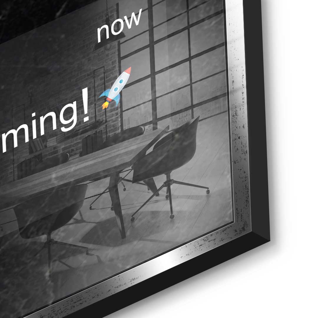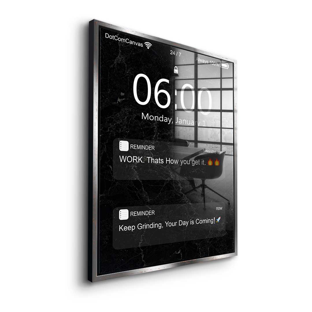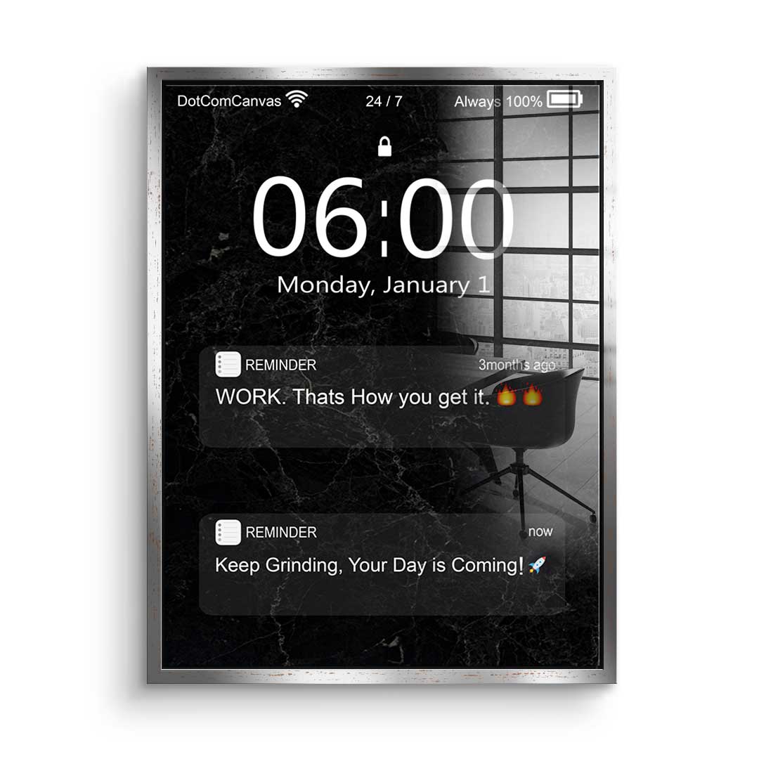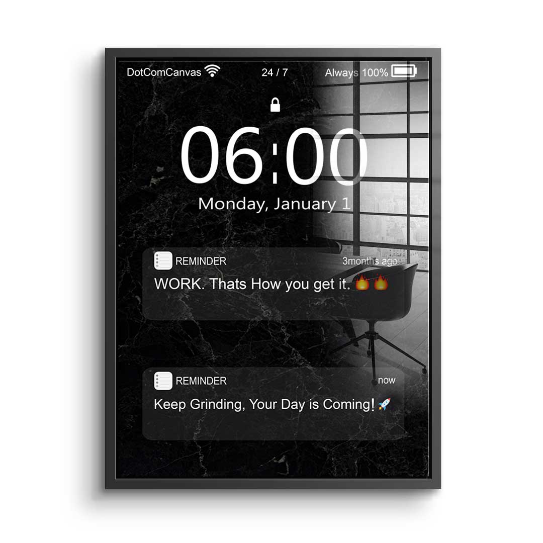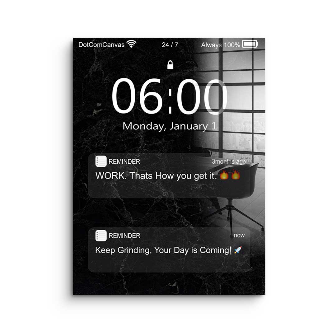 DOTCOMCANVAS® Premium Acrylic Glass Print with Motivational quote on mobile phone screen in black and white.