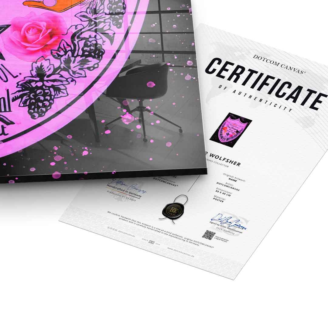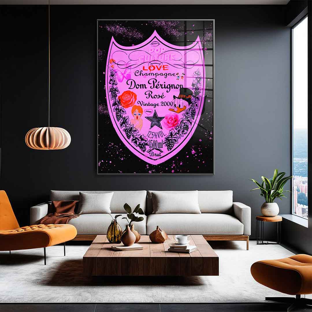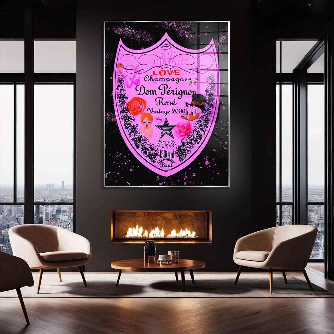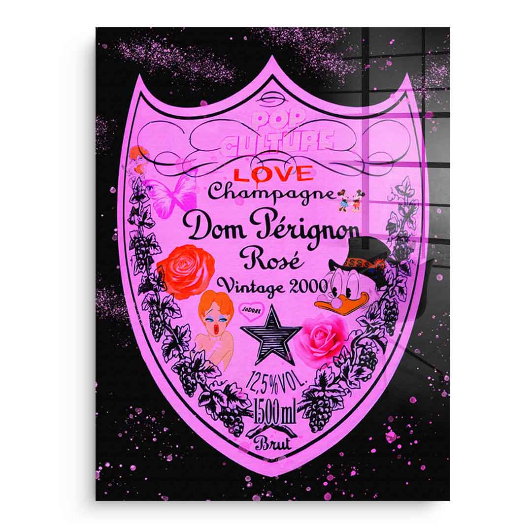 DOTCOMCANVAS® Premium acrylic glass picture with LOVE DOM PERIGNON Rosé motif in Pop Art style.