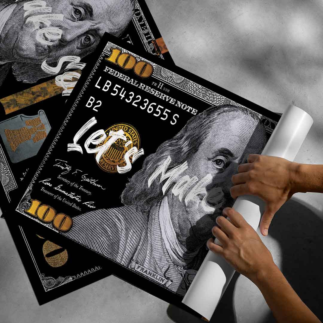 DOTCOMCANVAS® premium poster with Let's make some money motif.