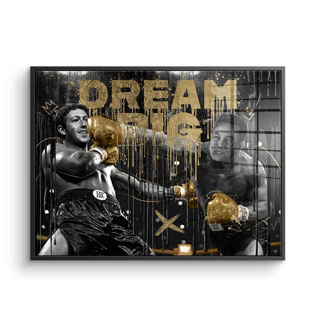 DOTCOMCANVAS® Premium canvas print featuring Mark Zuckerberg vs. Elon Musk - motif with the slogan "Dream big".