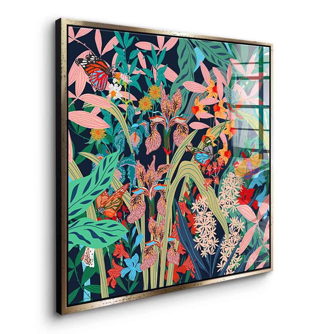 DOTCOMCANVAS® Premium Acrylic Glass Picture with Flowers and Butterflies - Motif .