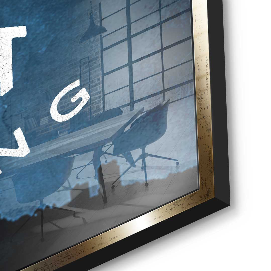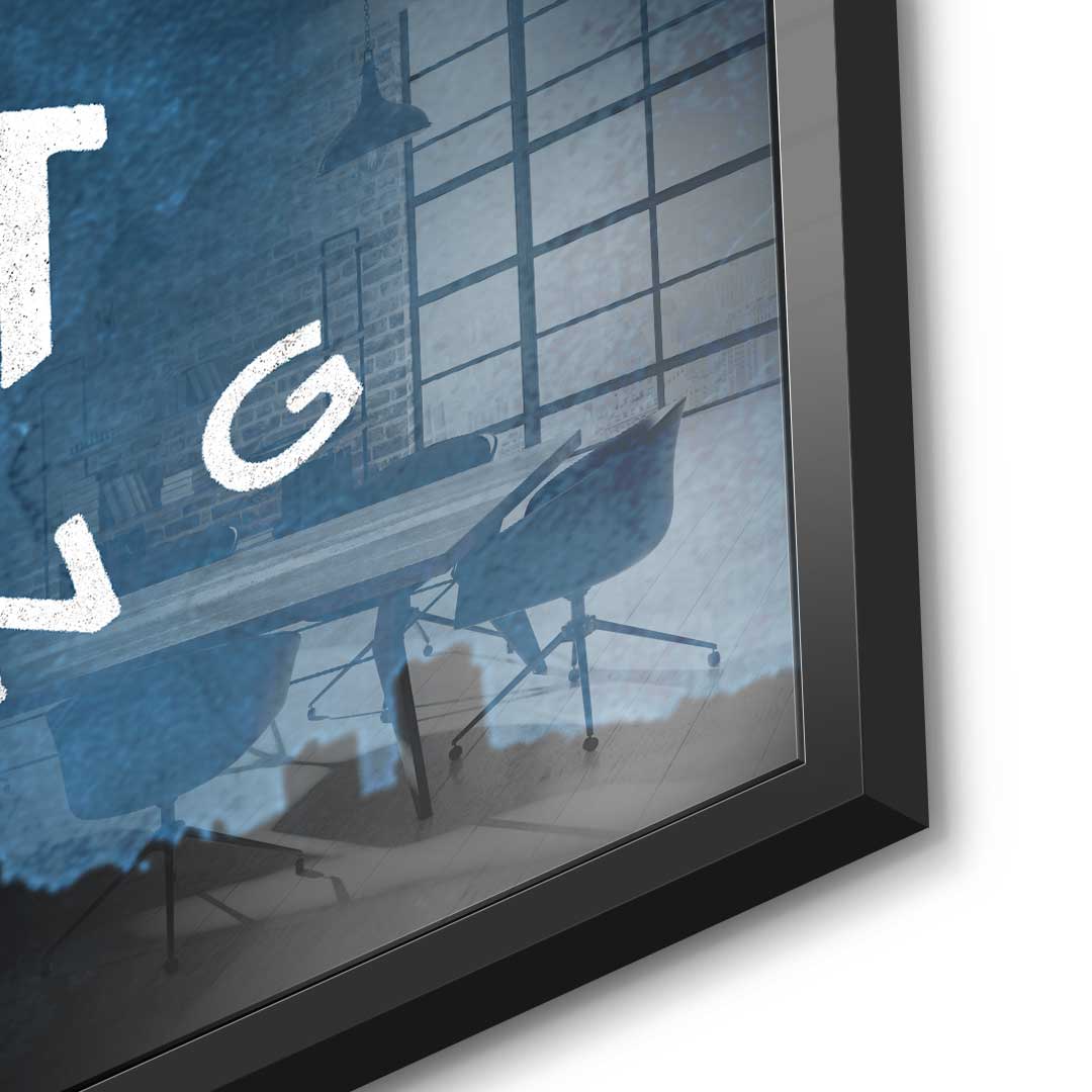 DOTCOMCANVAS® Premium acrylic glass picture with motivational quote in blue and white.
