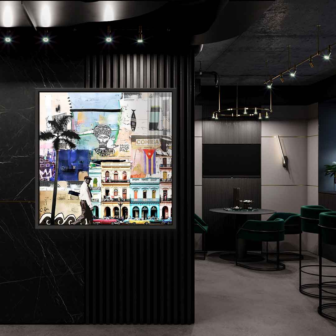 DOTCOMCANVAS® Premium acrylic glass print featuring a Cuban cityscape.