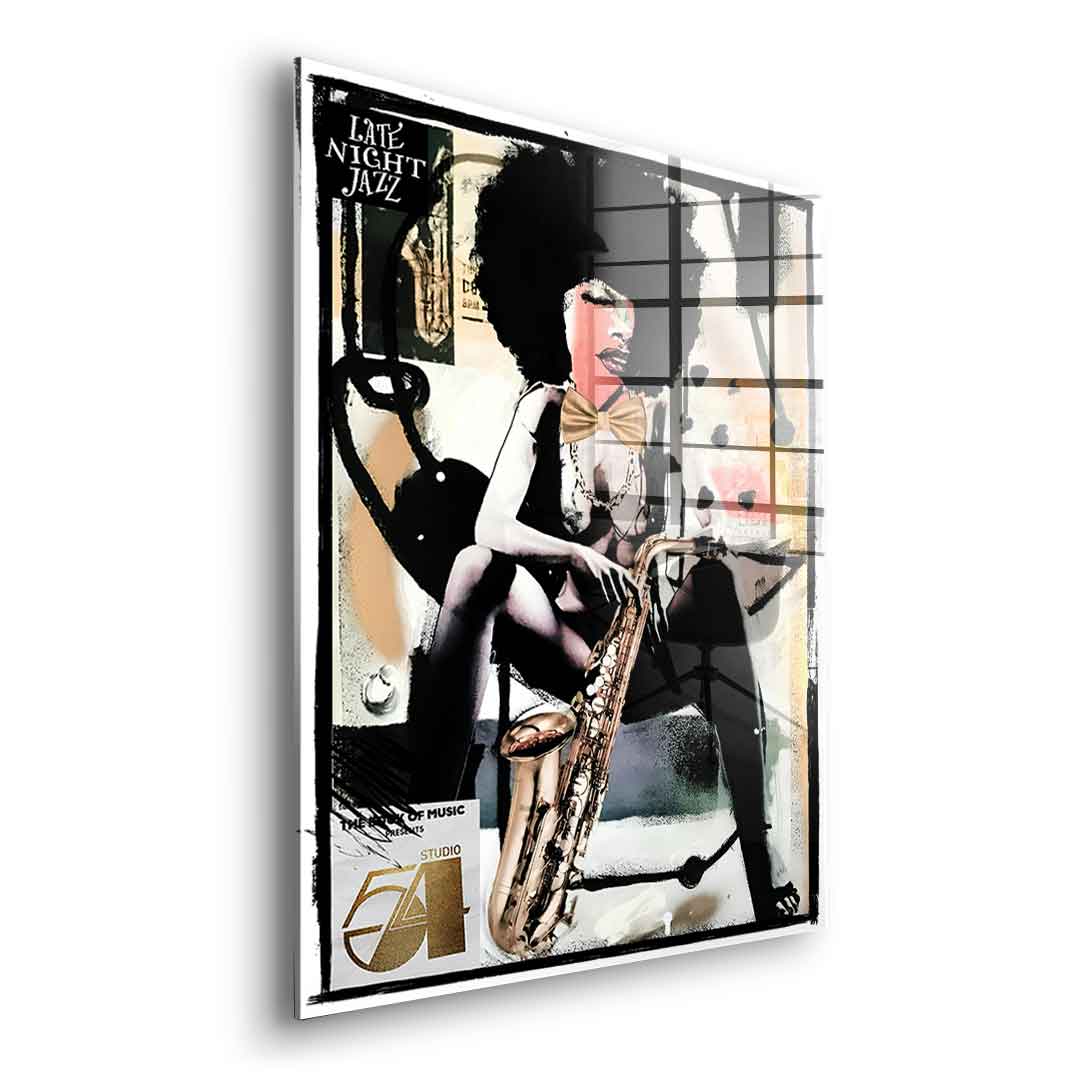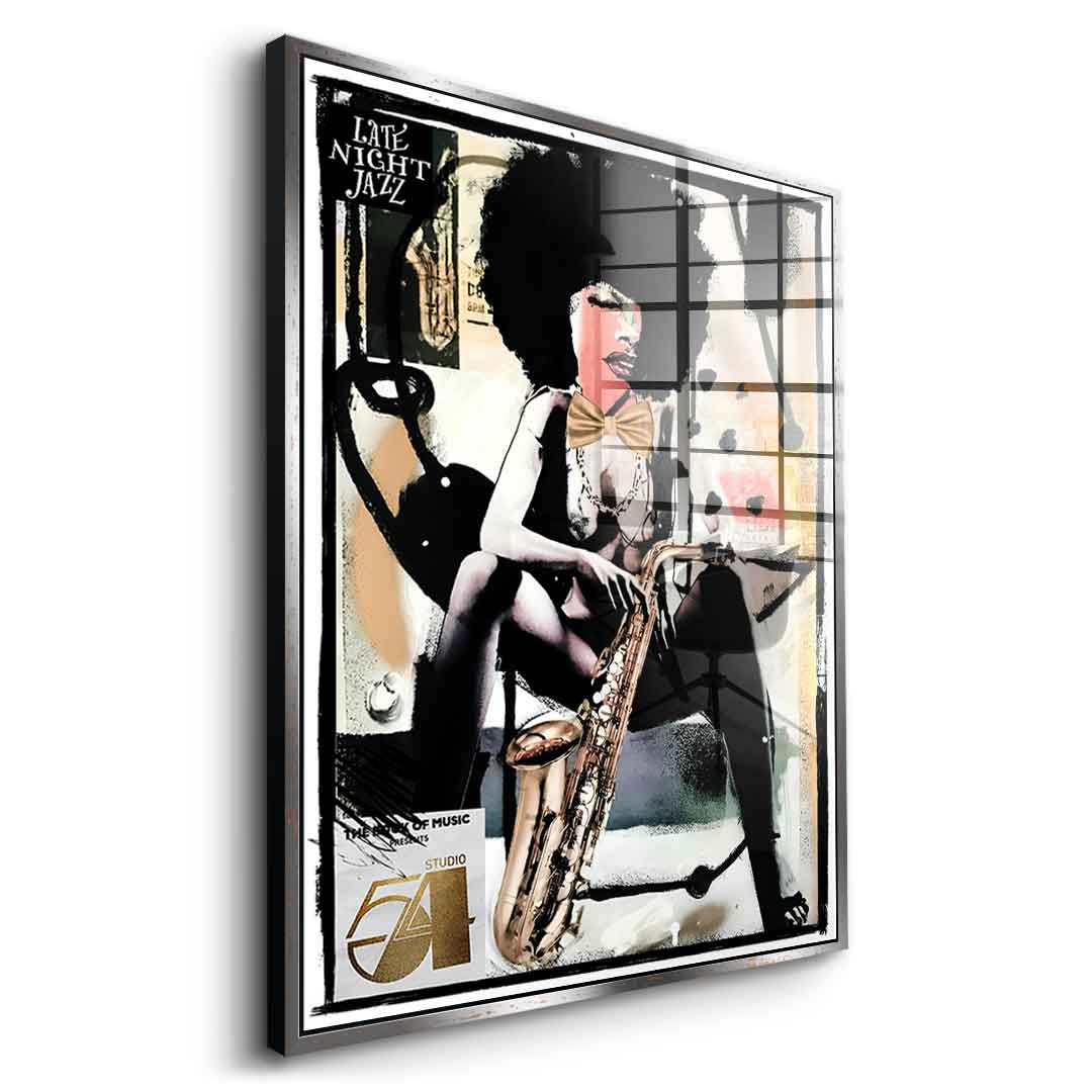 DOTCOMCANVAS® Premium Acrylic Glass Print with Late Night Jazz Motif.