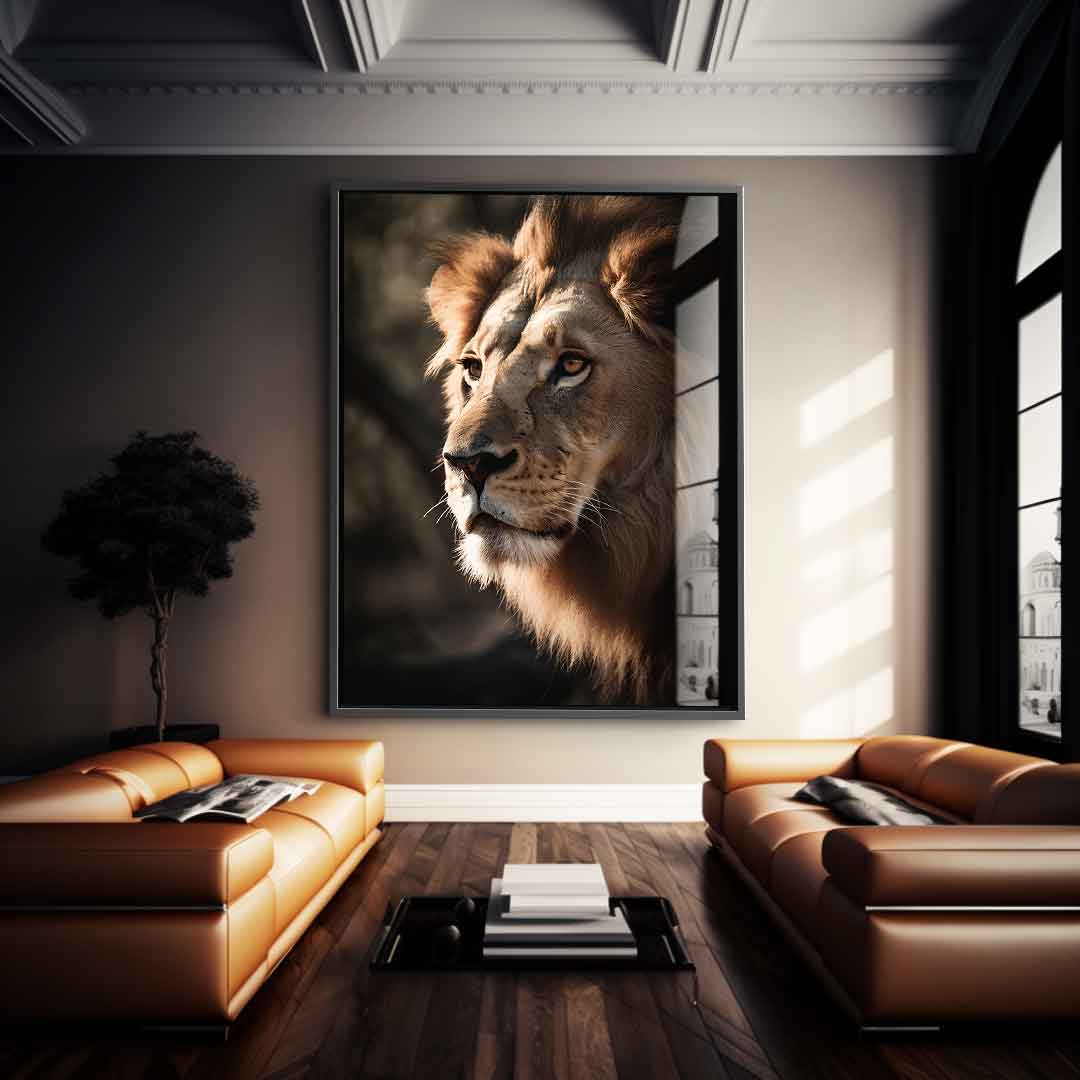 DOTCOMCANVAS® Premium Acrylic Glass Picture with Lion Motif.