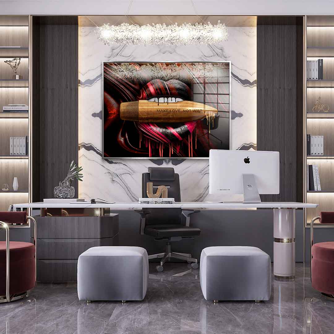 DOTCOMCANVAS® Premium Acrylic Glass Print with MAKE LOVE NOT WAR motif.